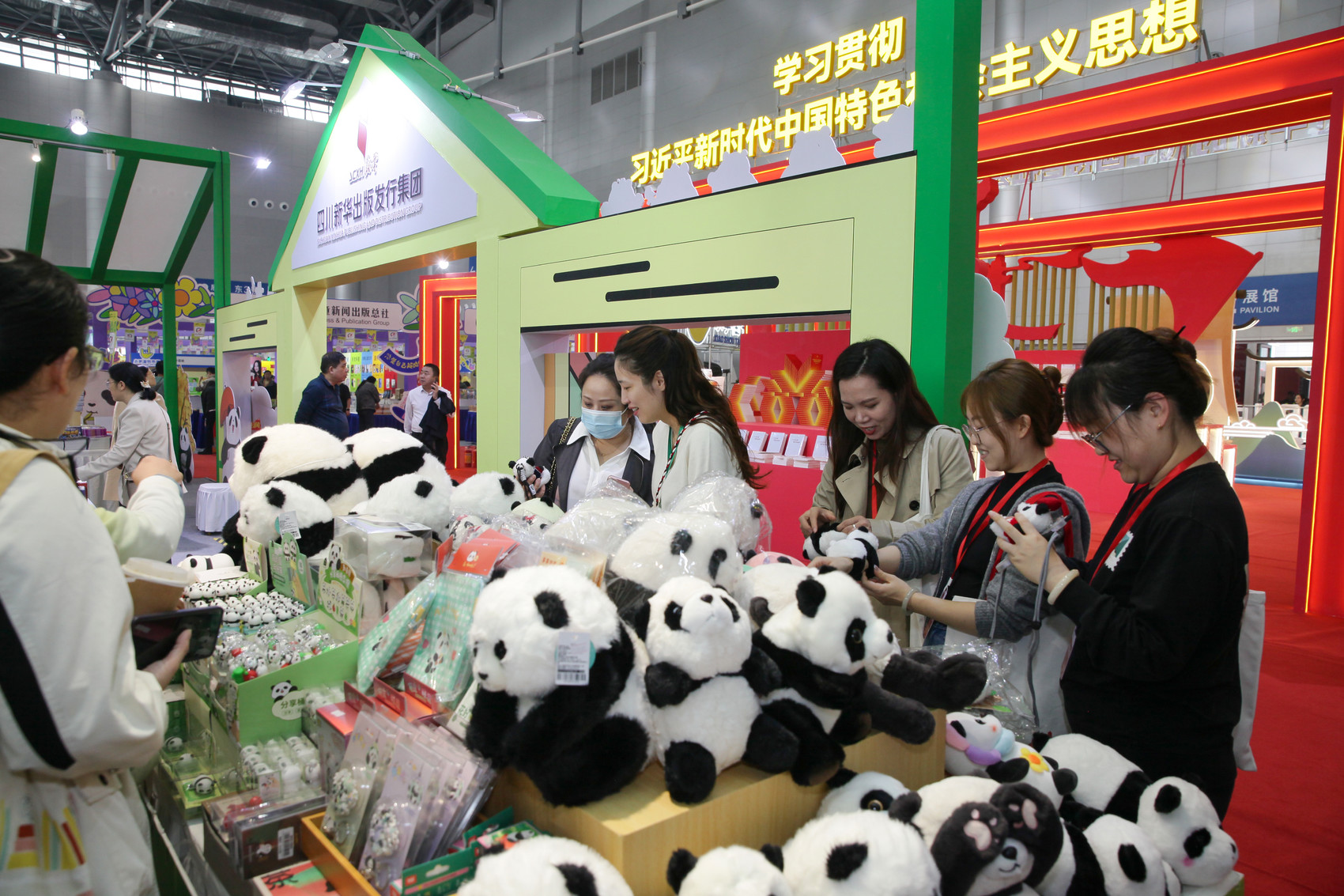 15日上午,书会一开幕,四川新华出版发行集团的展场就人气高涨。大熊猫,谁不爱?这次的展场以享誉全球的文化名片大熊猫为载体,复制了火爆出圈的成都熊猫书店风格,嵌入熊猫主题打卡装置,在黄山书会打造出一个具有典型四川特色的熊猫书店主题空间。这里,精选了220余种熊猫文创,不仅有3个月和5个月大的花花、萌兰玩偶,还有10月新上市的新生幼崽熊猫玩偶,纯羊毛手工工艺、非遗裘皮缝制以及一比一等比例复刻,让可爱软萌、纯真治愈的熊猫玩偶在现场引发热捧。