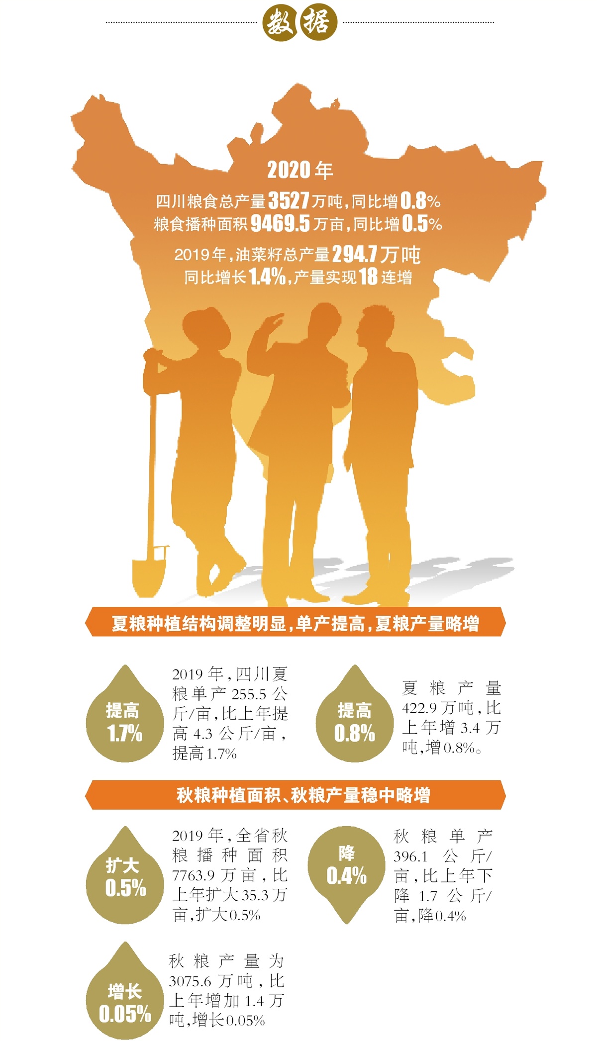 2020,四川粮食总产量3527万吨,同比增加0.8%。