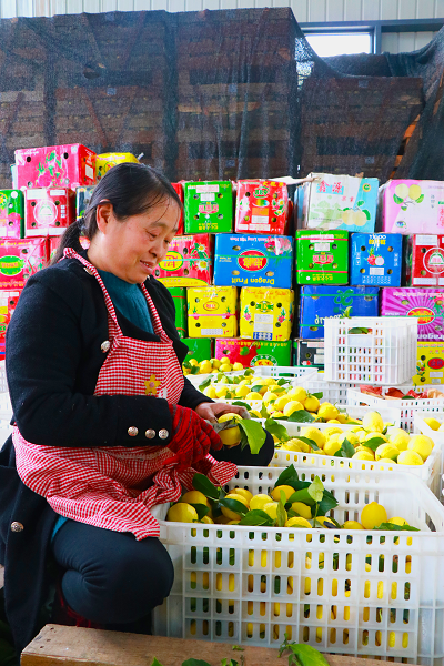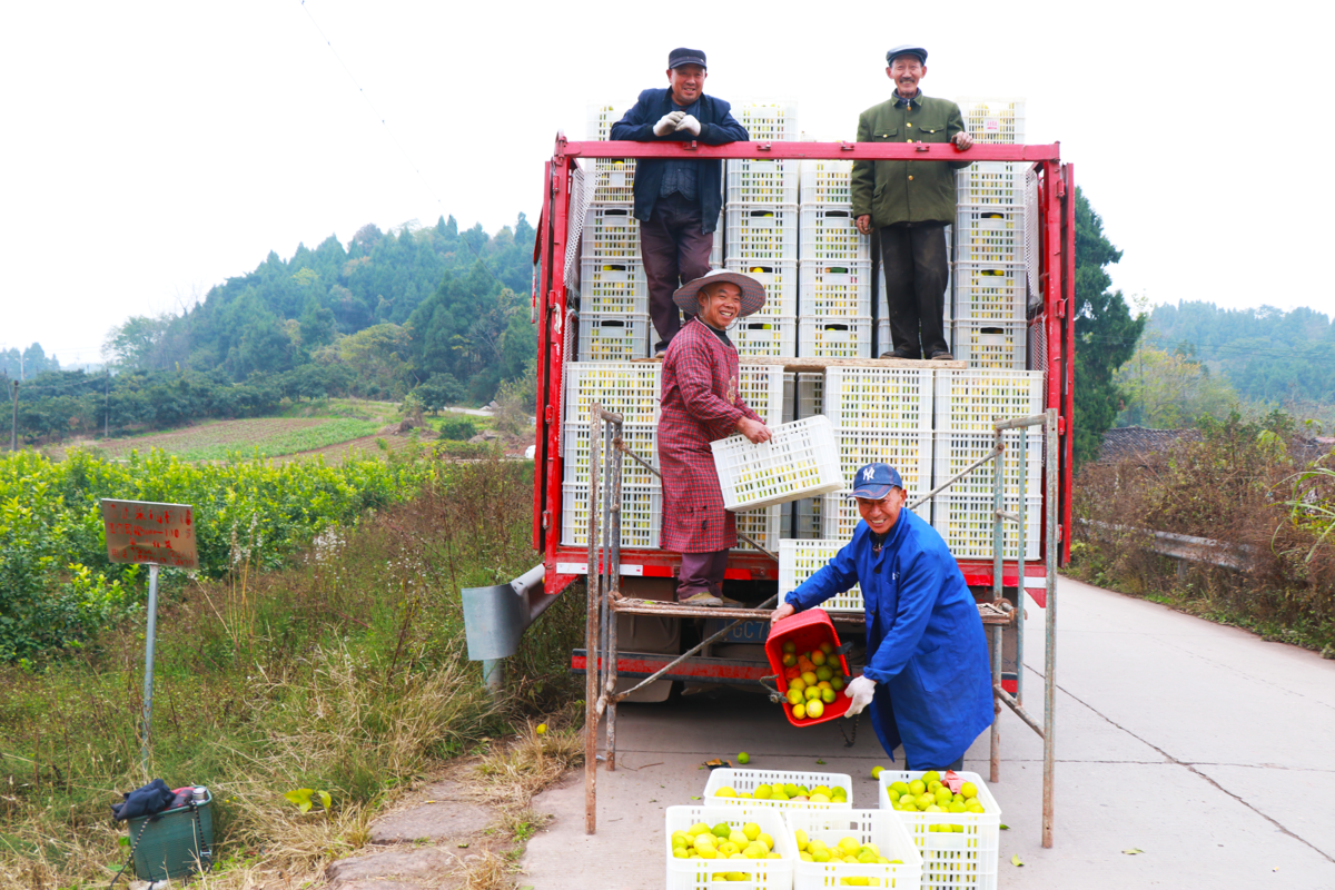 安居现代柠檬产业园,村民正在搬运柠檬