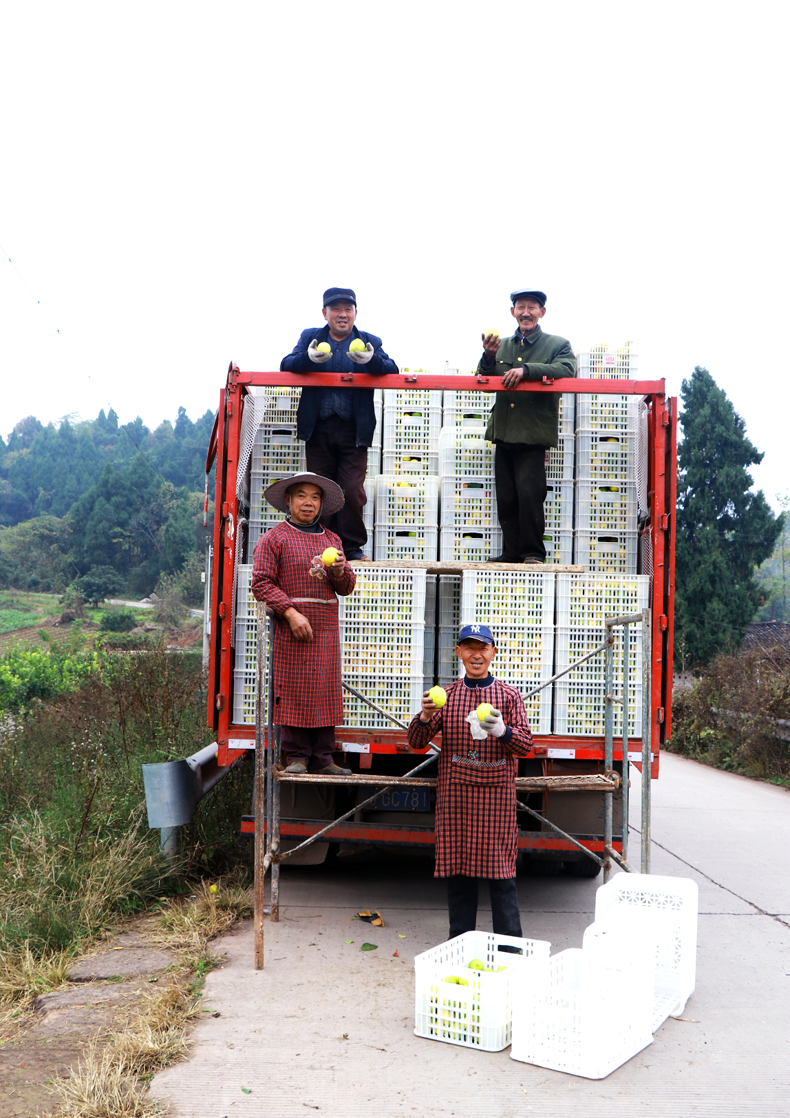 跟着代玉祥,记者走到了他认为的“最佳位置”。顺着代玉祥指的方向,记者看到,宽敞蜿蜒的水泥路像一张大网,覆盖了村里的居住小区、柠檬种植园、育苗大棚等。此时,柠檬产业园内,一箱箱新鲜采摘的果实正被搬上车。“这些果实将被运到遂宁、成都、重庆等地。”