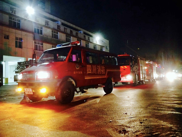 8月8日晚11时40分,遂宁市公安消防支队大院外警灯闪烁,受四川省公安消防总队调派,遂宁消防42名消防官兵搭乘7辆救援车辆,携带2条搜救犬及各类重型地震救援装备,连夜赶赴九寨沟地震灾区,参与抢险救灾。
