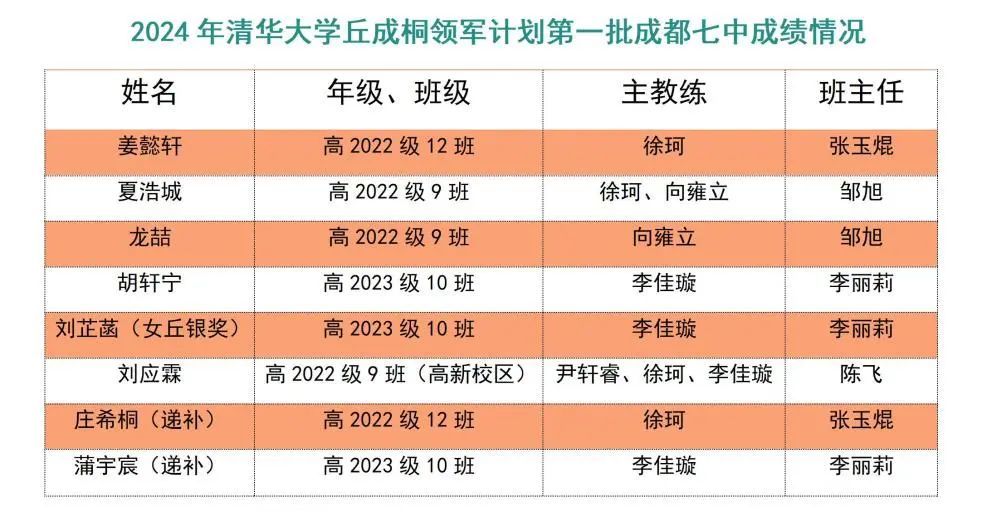 2024年清华大学丘成桐领军计划第一批成都七中成绩情况