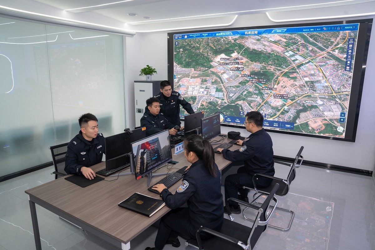 “辖区有山区、居民点、厂房、学校等等,巡逻范围较广。以往都是靠脚力,现在有了无人机,在大屏幕上便可一目了然。”陈坤介绍道,设置“无人机机库”还有另一层考虑:在接到敏感、重大警情后,无人机可以第一时间飞赴警情现场,及时收集固定证据,同时还可以对民警的执法过程进行有效监督。