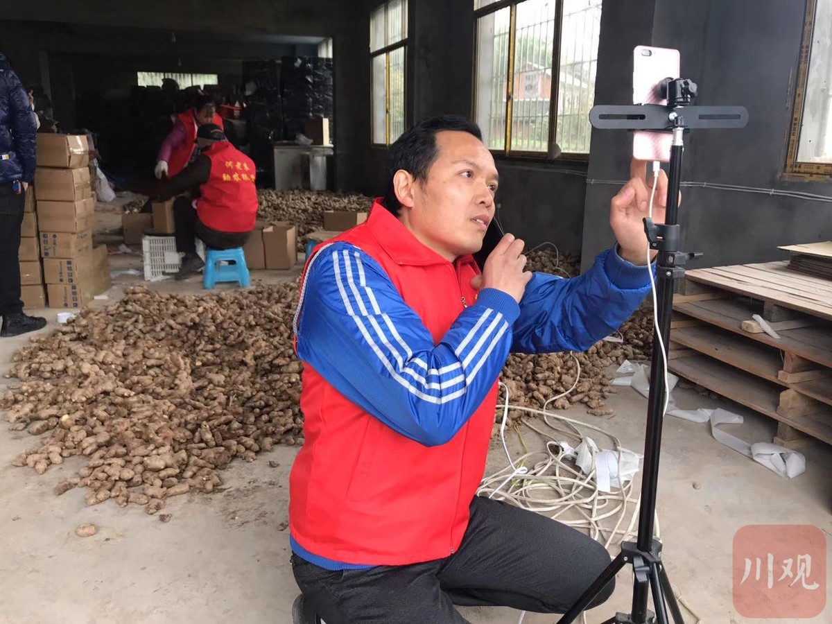 带着泥土清香的老姜、堆成一米多高的包裹、正在打包的村民……12月18日,内江市威远县龙会镇互助村“主播”何方彬忙着在网上直播带货。何方彬身后是四川绿丰源电子商务有限公司的仓储基地。除了正值丰收季的老姜,这里还有经过初加工的大头菜、花生酥等农副产品。