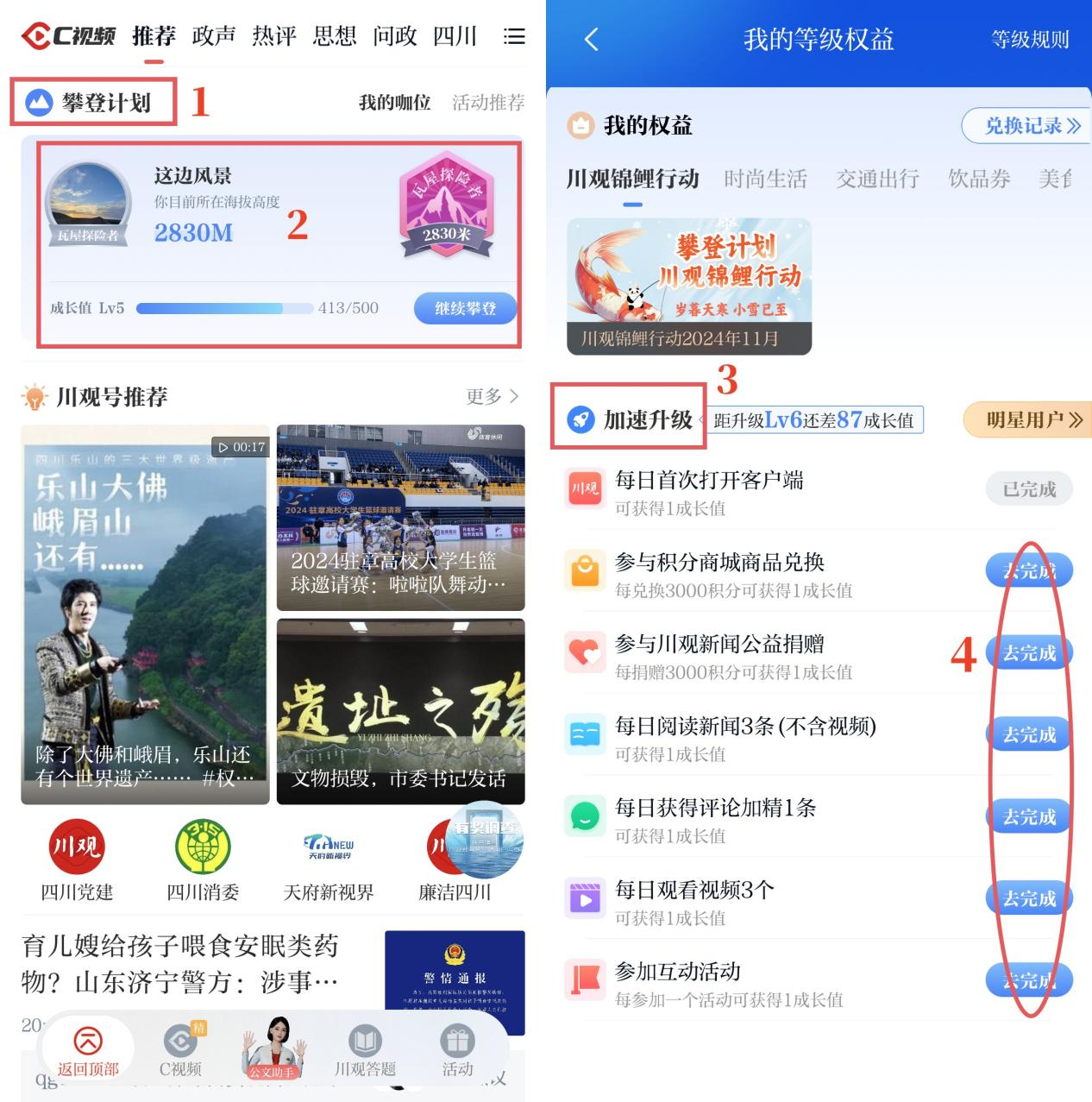 第一步:在川观新闻客户端首页找到“攀登计划”活动页面;
