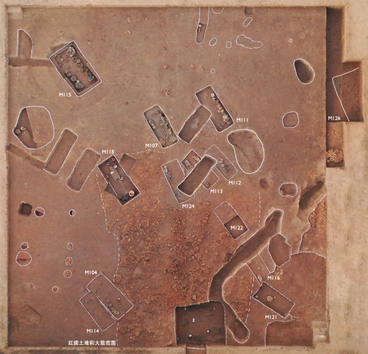 2023年以来,围绕明晰遗址内部布局和确认遗址宏观结构两个方面,考古工作者开展了主动性考古发掘。截至目前,共发现新石器时代红烧土堆积4处、墓葬17座、房址1座、灰坑20座、灰沟1条、水井1口。