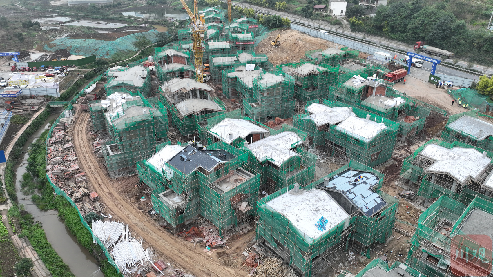 11月25日,在宜宾高县庆岭镇桥坎村聚居点项目二期建设现场,一幢幢独栋民居建筑主体结构已然呈现,施工运输车辆来回穿梭,施工人员忙碌作业,正在上演着项目建设的“速度与激情”。