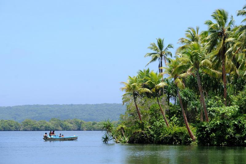 2013年10月,在所罗门群岛东伦内尔岛,人们在特加诺湖划船。新华社记者高健钧摄