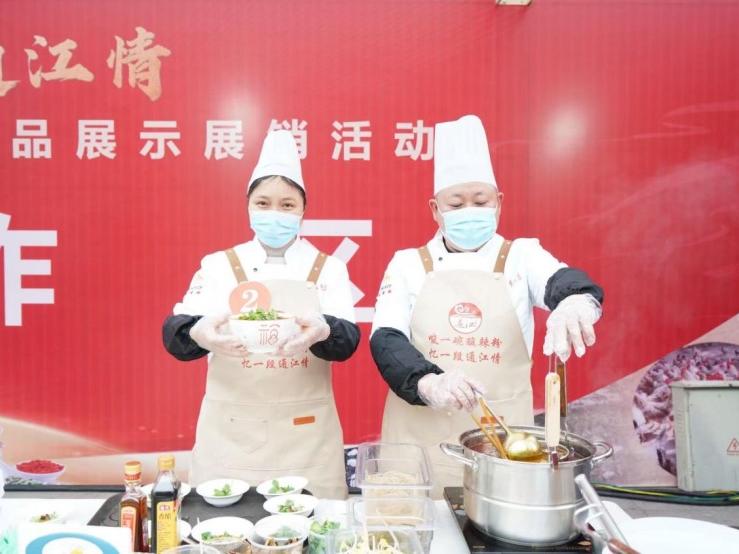 在旺苍县城的振兴路,200余米长的餐桌宛如一条美食长廊,依次排开。桌上,旺苍酸辣粉热气腾腾、香气四溢,红军饼、木门卤鸡、五权冯鸭子、木门醪糟汤圆等特色美食满满当当、琳琅满目,恰似一幅舌尖上的“旺苍风情画”。桌旁,上千游客围坐一团,欢声笑语中,共享这份热辣滋味。