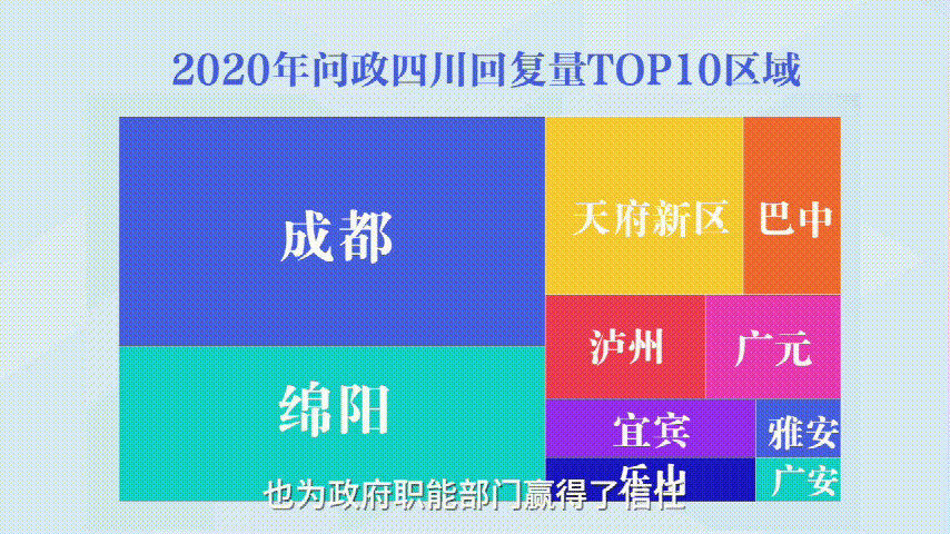 《报告》显示,全省21个市州及天府新区的职能部门均参与到“问政四川”网民留言的办理工作中。其中,成都、绵阳、天府新区回复量排名前三。