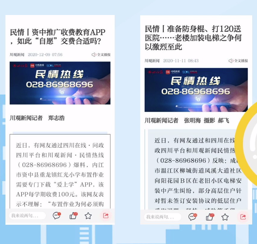 针对群众最关心、涉及面较广的问政留言,“问政四川”第一时间派出记者现场调查、深入采访,推出舆论监督报道200余篇,有效推动群众反映的“操心事、烦心事、揪心事”得以切实解决,获得众多网友点赞。