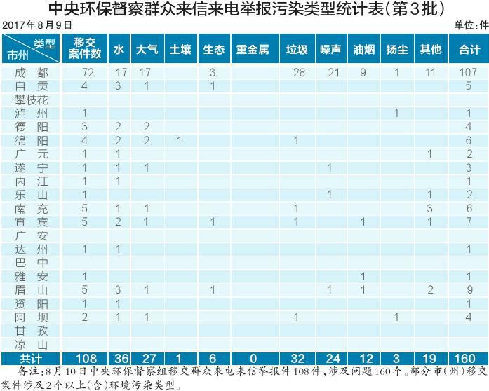 8月10日,中央第五环境保护督察组向我省移交第三批信访件,共计108件,加上此前移交的120件信访件,目前累计移交信访件228件。