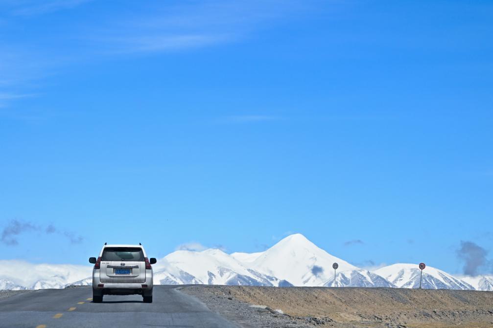 2024年5月27日,一辆车行驶在青藏公路上。新华社记者 张龙 摄
