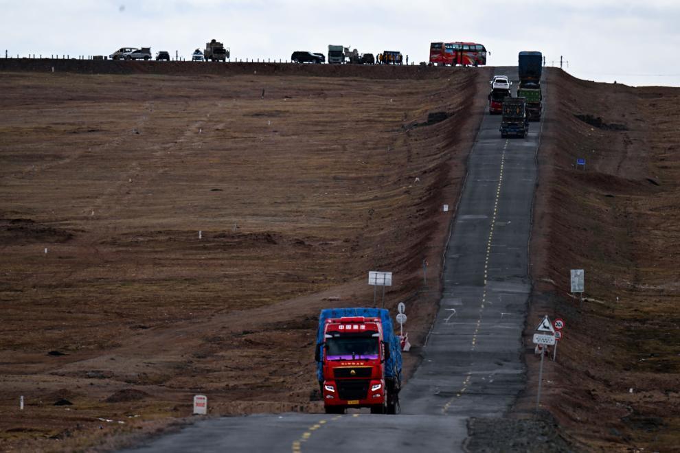 2024年5月25日,车辆行驶在青藏公路上。新华社记者 张龙 摄