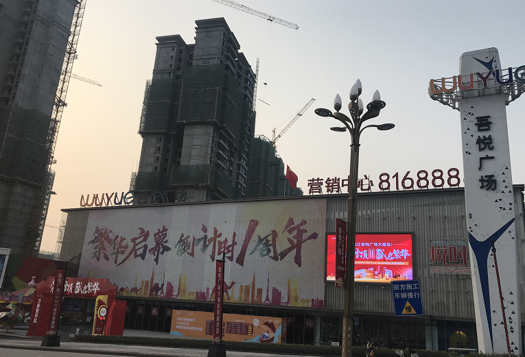 同一时间,在江宁街边,川南城际铁路三元站建设项目上,塔吊林立,站前广场配套工程正朝着明年6月底前竣工的目标加紧建设中。对面,吾悦广场上方“封顶大吉”四个大字十分醒目。不远处的新华全球购内,琳琅满目的商品已吸引了不少人气,一栋150米超高层及三栋100米高层的建筑即将傲对碧空。