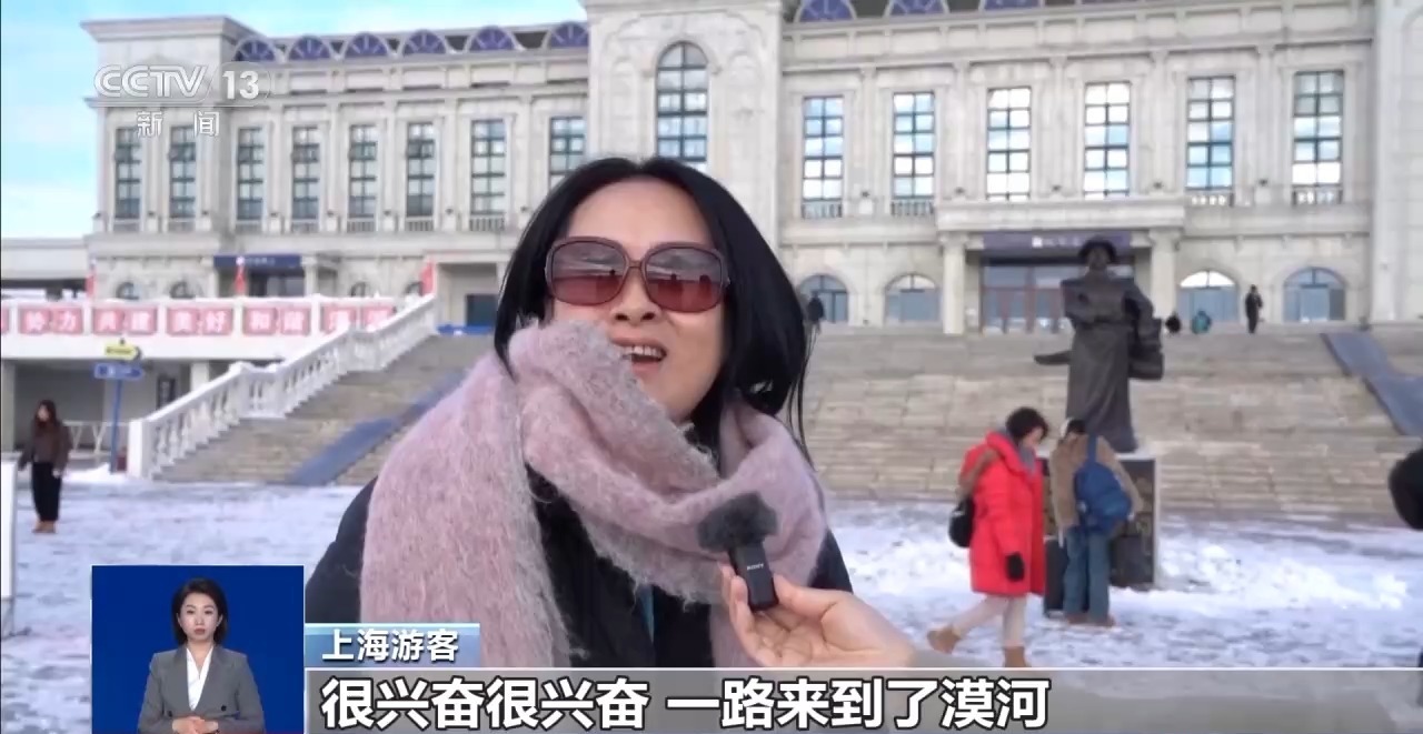 上海游客:坐上雪国列车,看着雪国的风光。很兴奋,一路来到漠河,也是我最期待,最向往的一个地方。