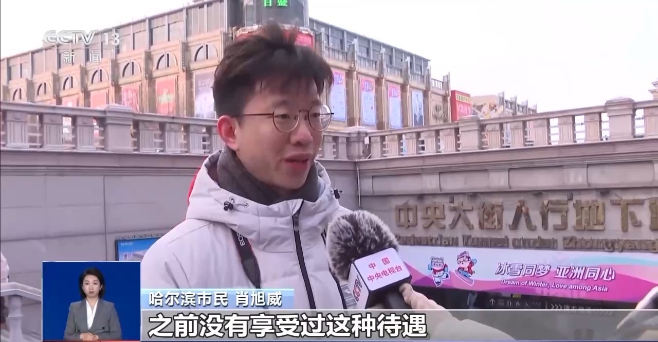 哈尔滨市民 肖旭威:我们作为本地人,虽然有时候会调侃,说“酸了”,之前没有享受过这种待遇,但更多的是调侃。我们也希望这样的措施多多落实,让外地的游客,在哈尔滨有更好的旅游体验。