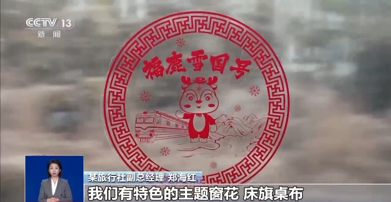 某旅行社副总经理 郑海红:在列车内部做了一个整体装饰,我们有特色的主题窗花,床旗桌布,让南方的“小金豆”来到黑龙江,不但能够赏冰看雪,还能体验到我们黑龙江独有的鄂伦春的非遗,感受冰雪给大家带来的震撼。