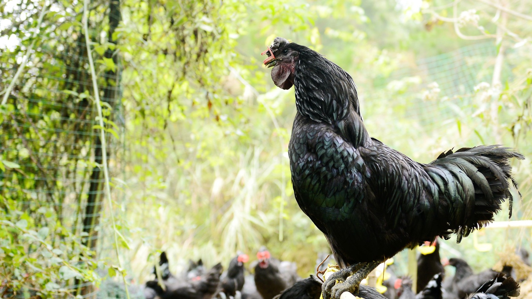 万源市百里坡旧院黑鸡养殖专业合作社基地的万源黑鸡。受访者供图