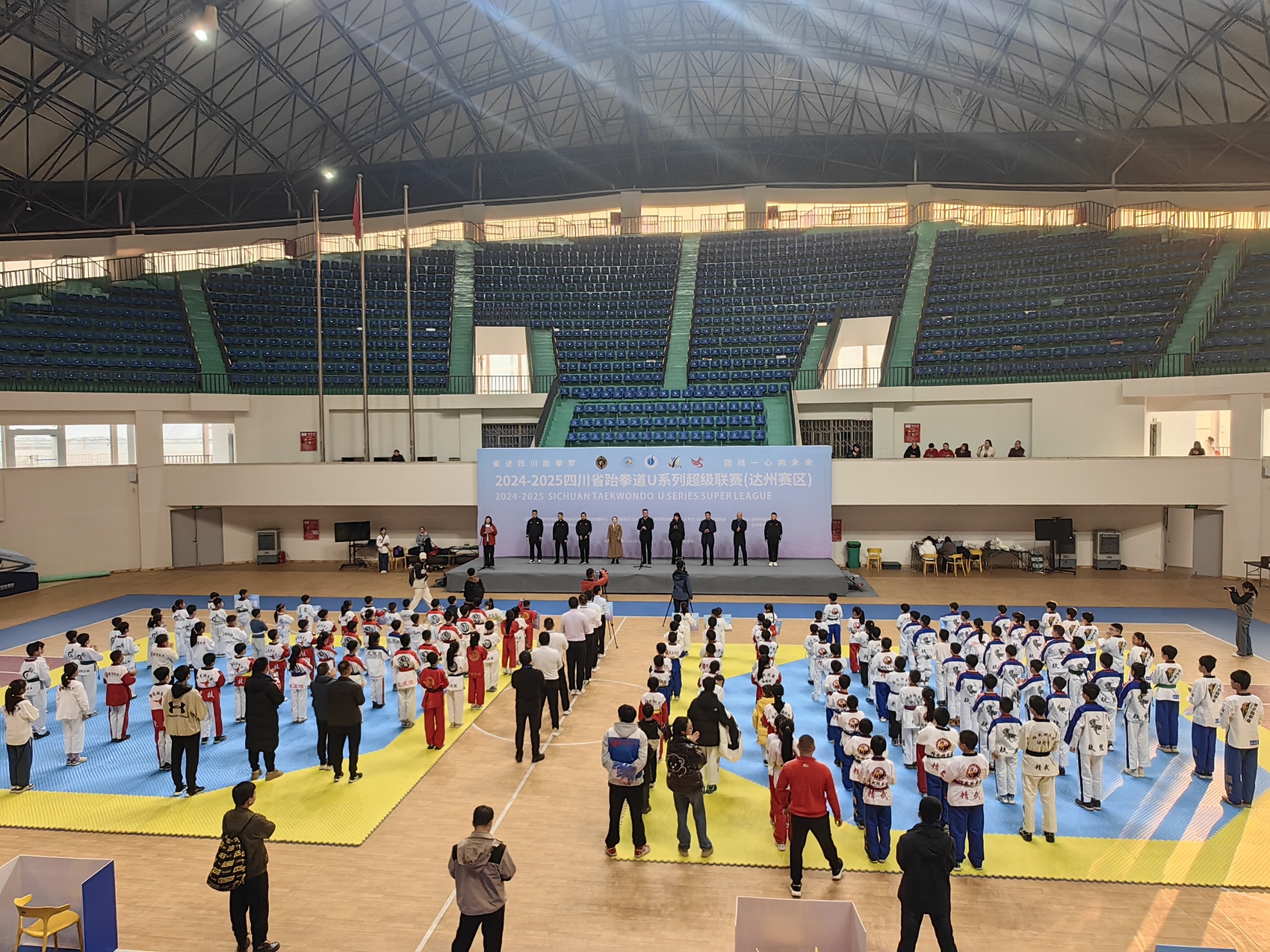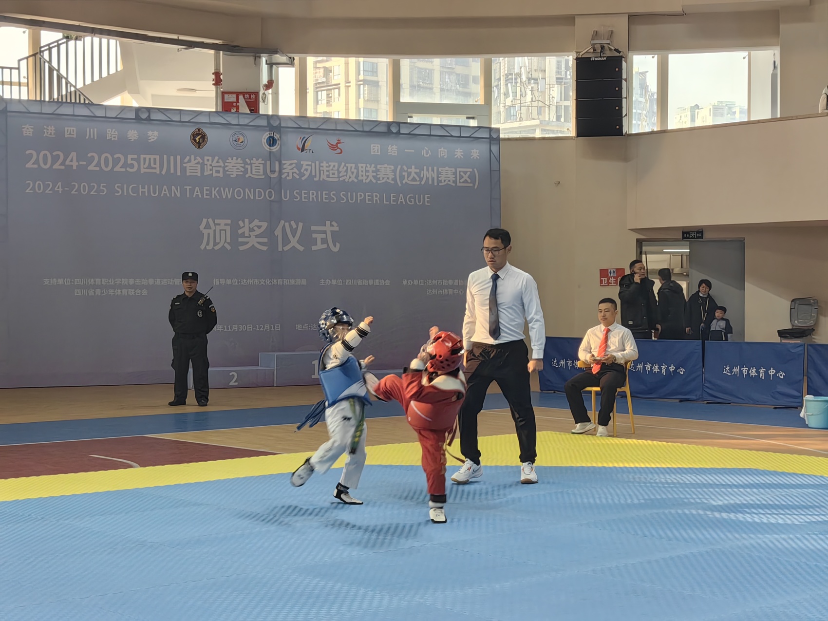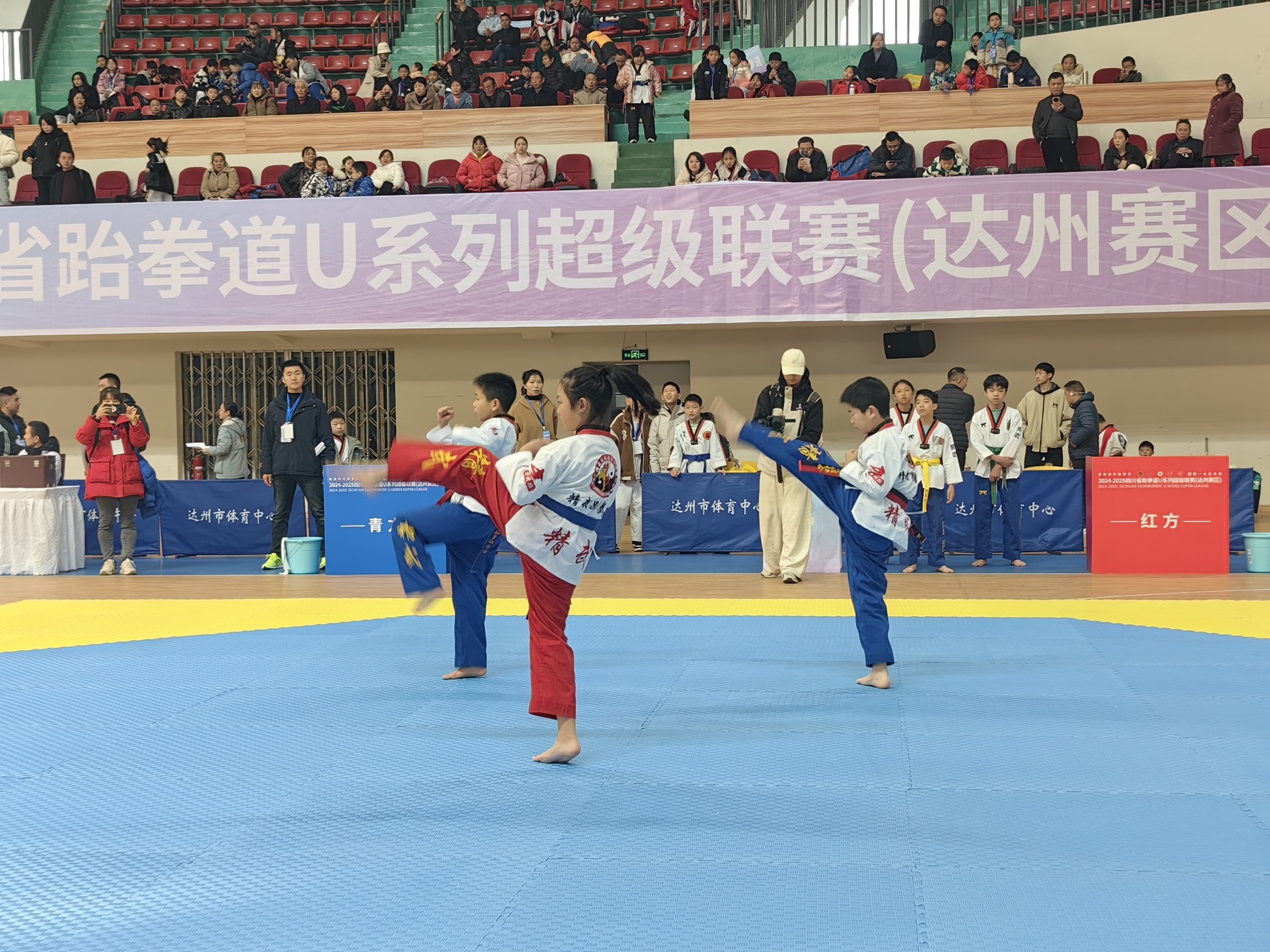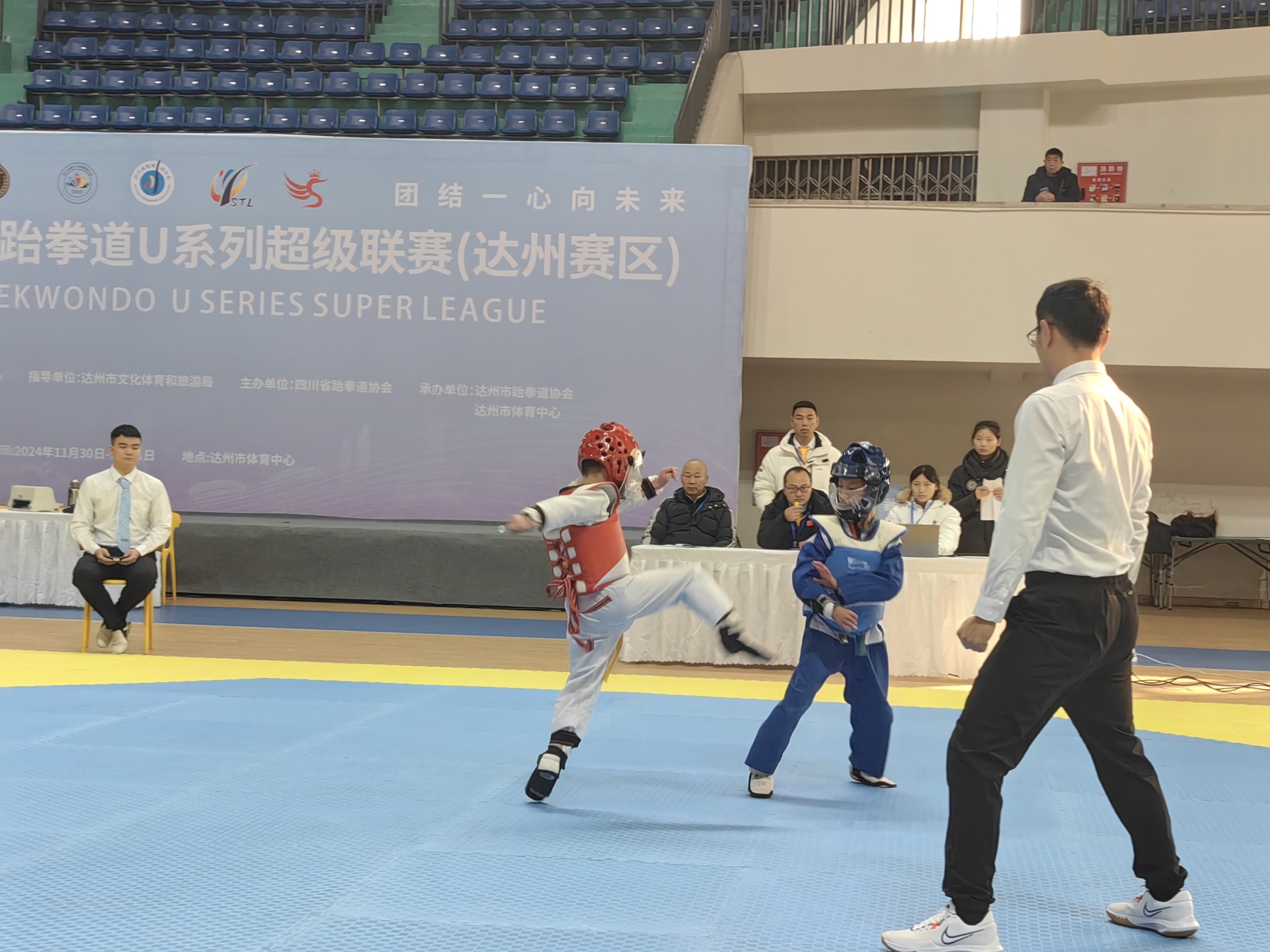 11月30日,2024-2025四川省跆拳道U系列超级联赛(达州赛区)在达州市体育中心开赛。来自达州各县(市、区)13支队伍300余名运动员参加比赛。