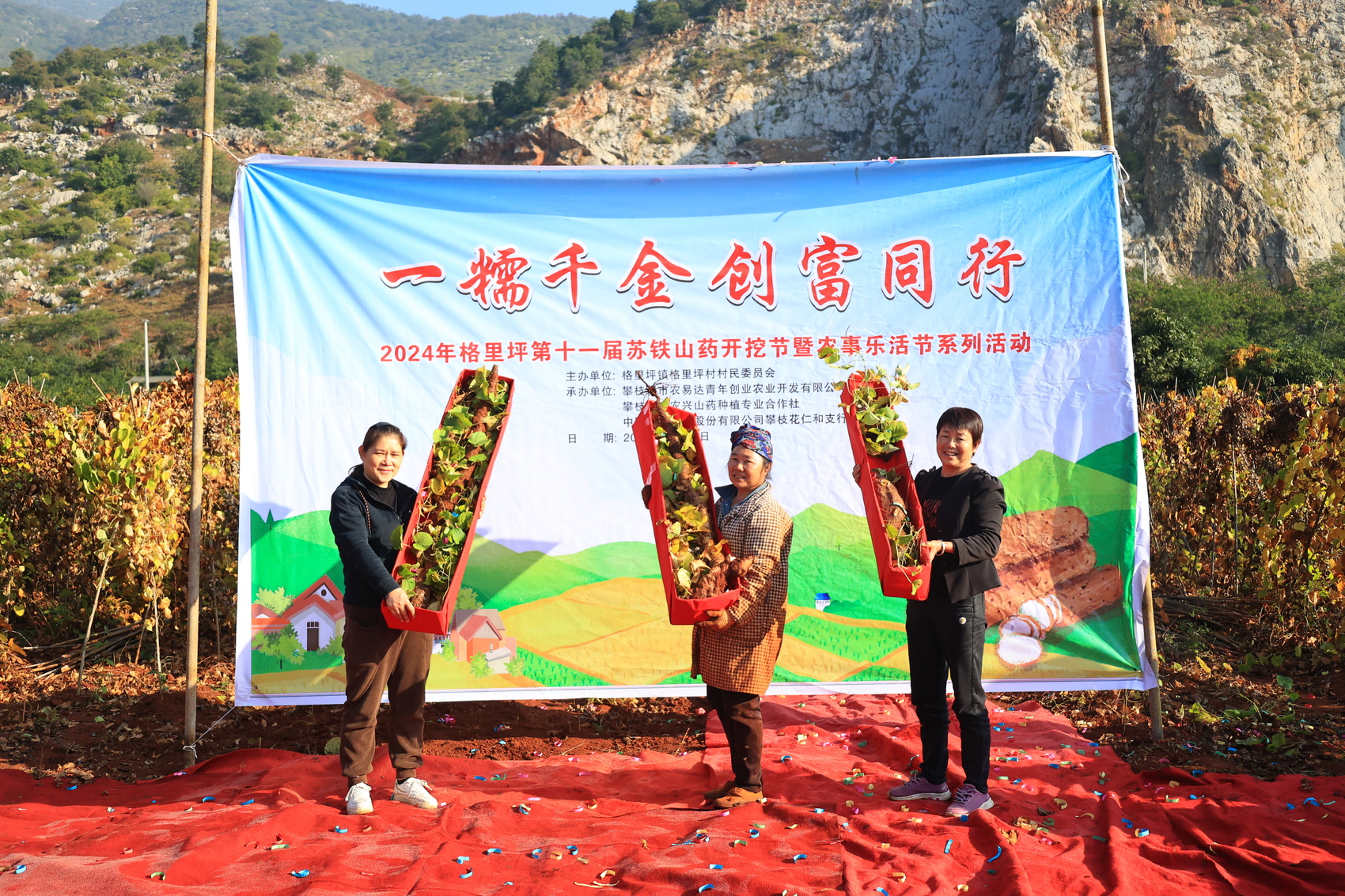 11月30日,第十一届苏铁山药开挖节在攀枝花市西区格里坪镇格里坪村拉开帷幕。今年的活动以“一糯千金,创富同行”为主题,吸引了众多游客前来参与体验。
