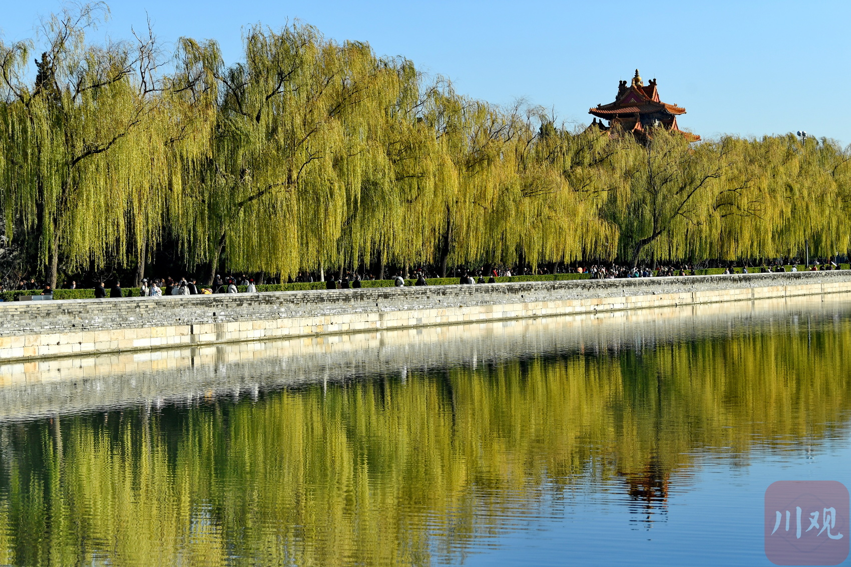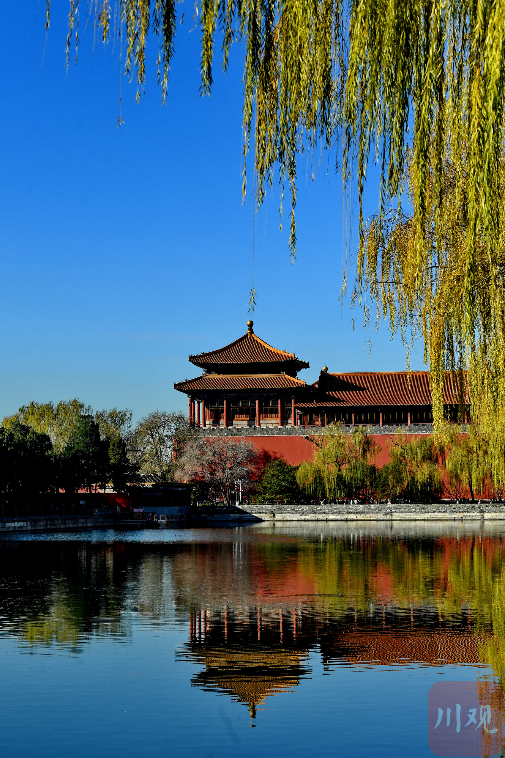 柳树在“北京蓝”的映衬下美不胜收。