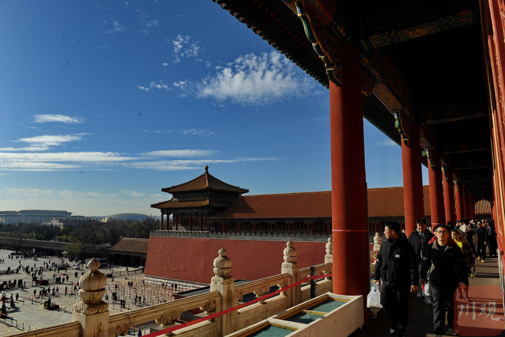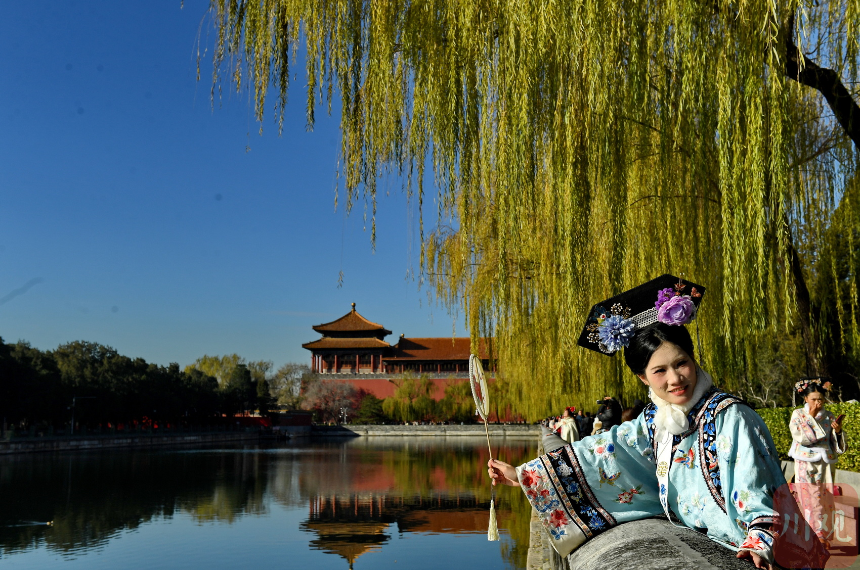 游客故宫附近留影,在“北京蓝”的映衬下美不胜收。