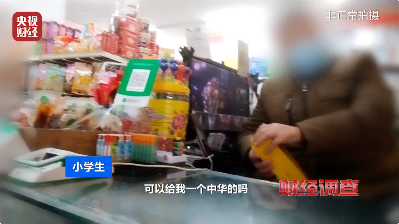 在西安市莲湖区的一家便利店里,记者看到一个二年级的孩子,不停地央求老板,索要烟盒、“烟卡”,口中提到的香烟就是和天下、中华。