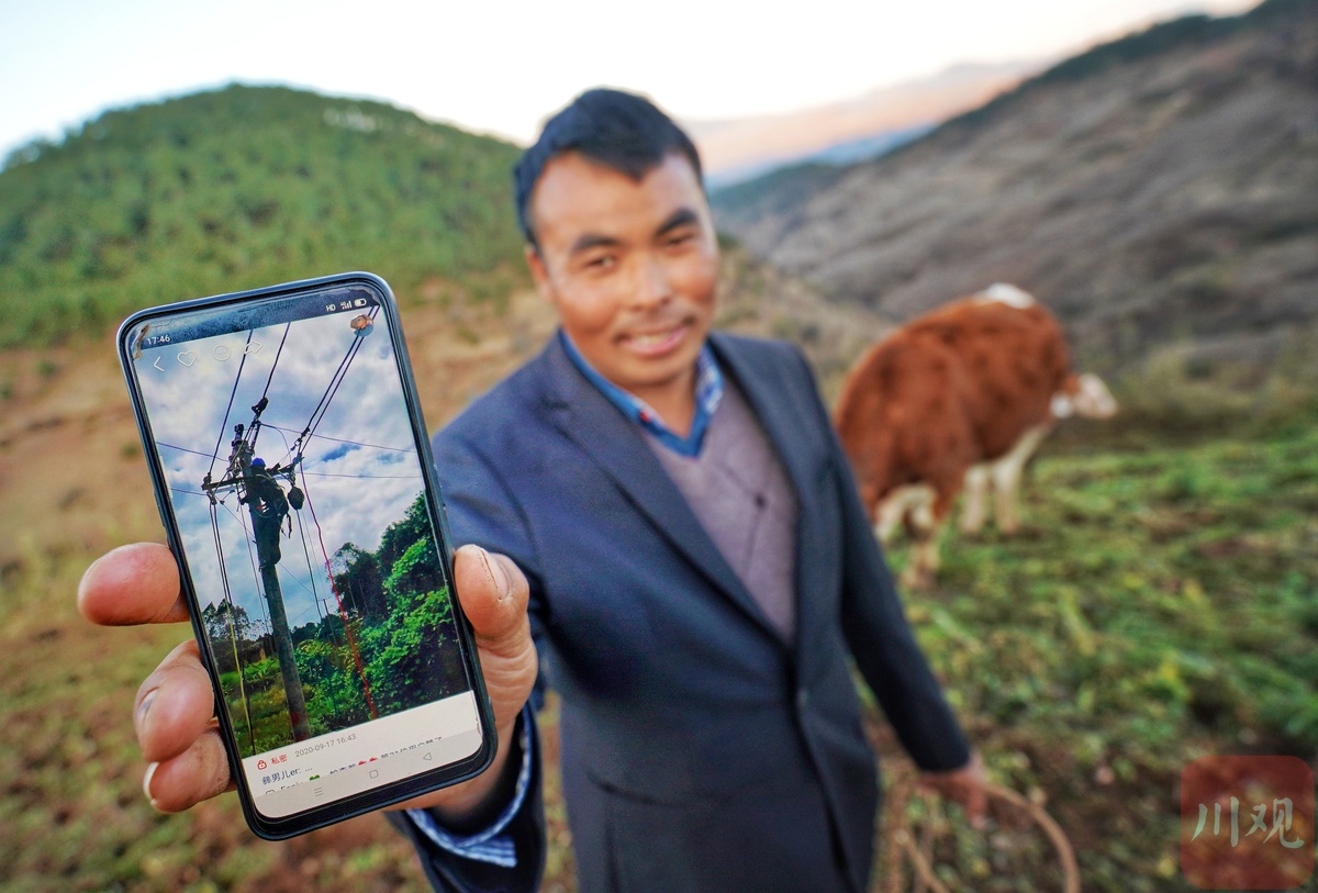 在互联网的世界里,他化身“彝男儿”,把自己的生活拍成短视频——有时候是在工地上安装电线,有时候是村里的风景,还有他的牛。在外面打工,想家的时候,他就翻出来看看。