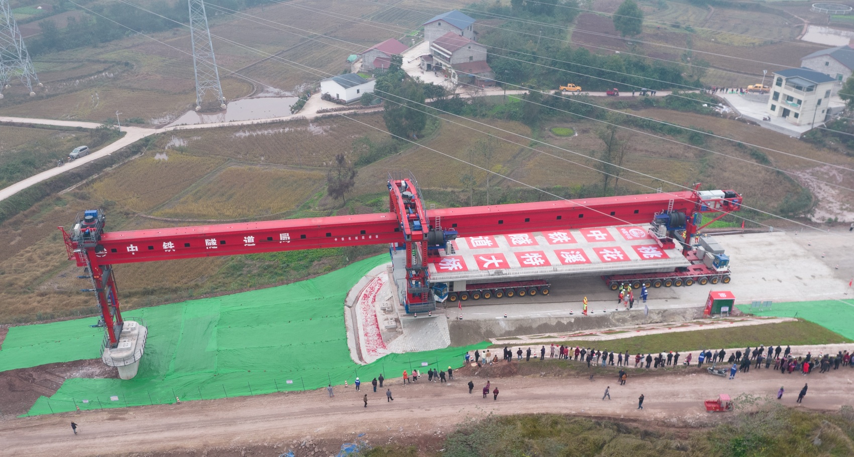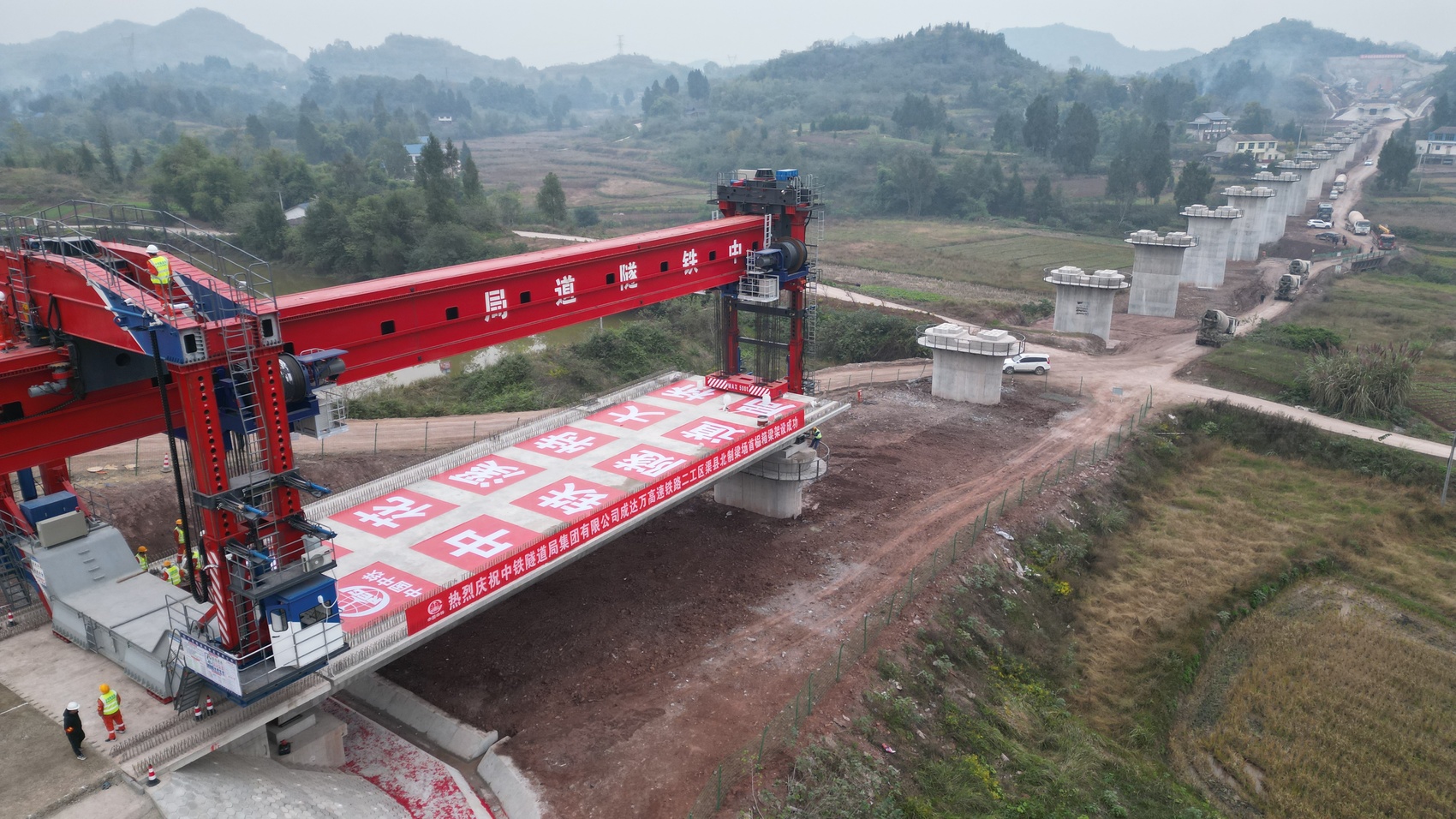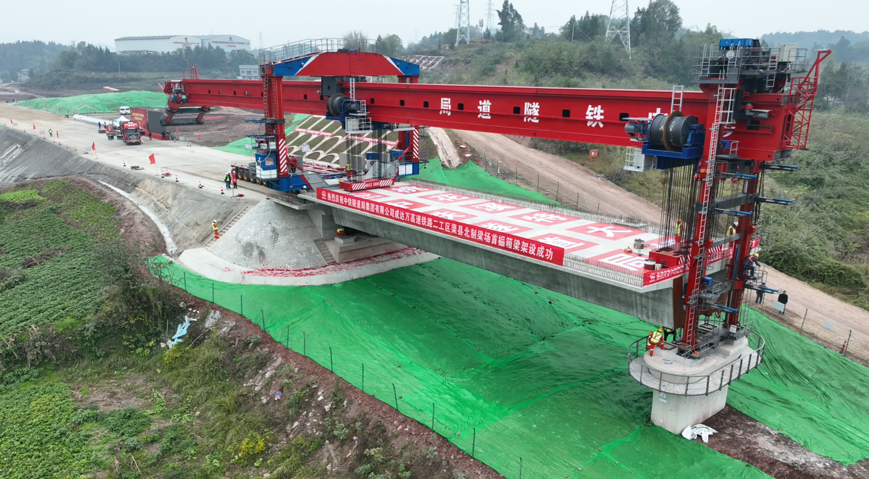 成达万高铁渠县段首榀箱梁架设现场。蒲建成 摄
