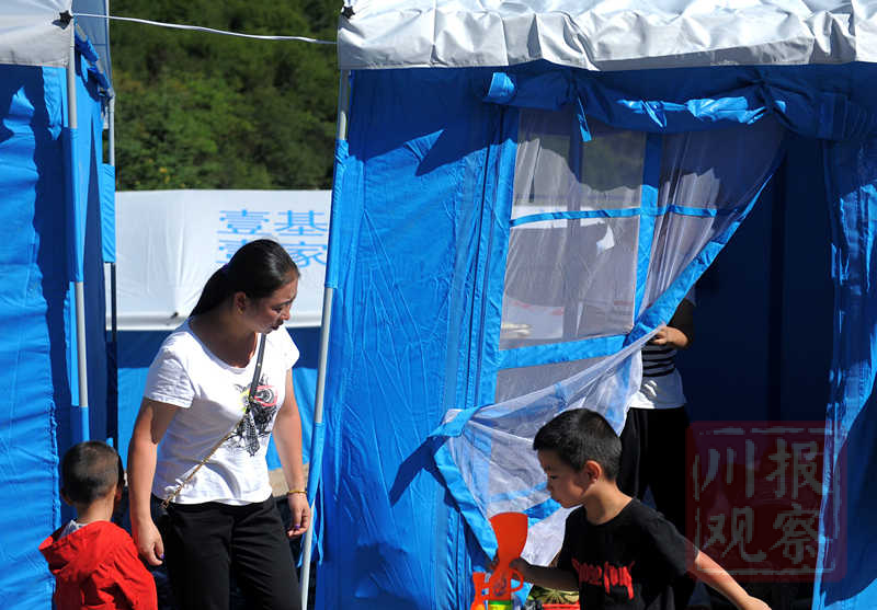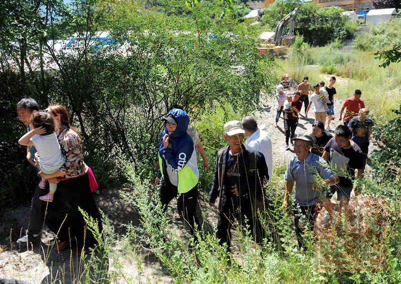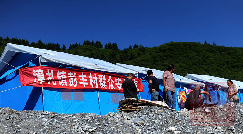 8月13日上午10点40分,九寨沟县漳扎镇彭丰村在月亮湾受灾村民安置点200余村名开展了预防泥石流演练。