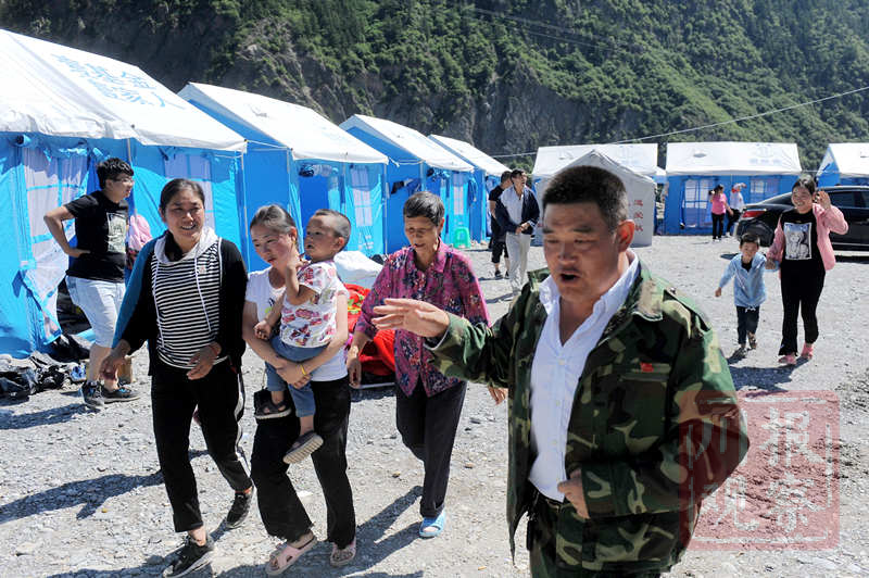 “8.8”地震发生后,该村160户分为三个临时避险帐篷安置点,为进一步做好地质灾害应急处置工作,提升应急反应能力,组织村干部、医护人员开展泥石流地质灾害应急避险演练,并对周边山区进行了地质灾害排查。