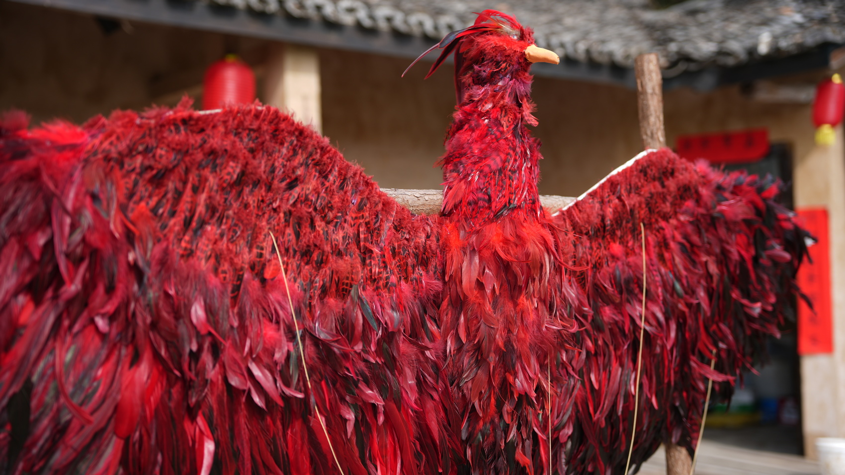 在用竹篾扎制骨架时,手被竹子划伤是常有的事,随后粘贴羽毛更是费时又费力。“朱雀羽毛要流光溢彩,毛色就要有渐变层次之分。光是把羽毛根据颜色深浅区分开来,就选了几天几夜。”刘家毓说,粘贴这几万根羽毛就花了整整13天。