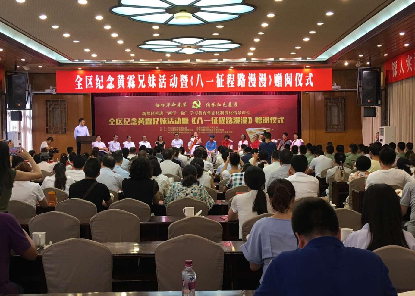 8月14日上午,一本书,《八一征程路漫漫——黄霖参加南昌起义自述》;一个图片展,“缅怀革命先辈 传承红色基因”;一场红色演讲及赠阅活动,把新都区督桥河村一个“红色家庭”的革命故事推送到人们眼中,革命先辈黄霖及其三兄妹一起参加革命及新中国建设的光辉历程令在场参观者深受教育,也让人们对刚刚热映的电影《建军大业》所传递的理想与信念,有了深切的感受。