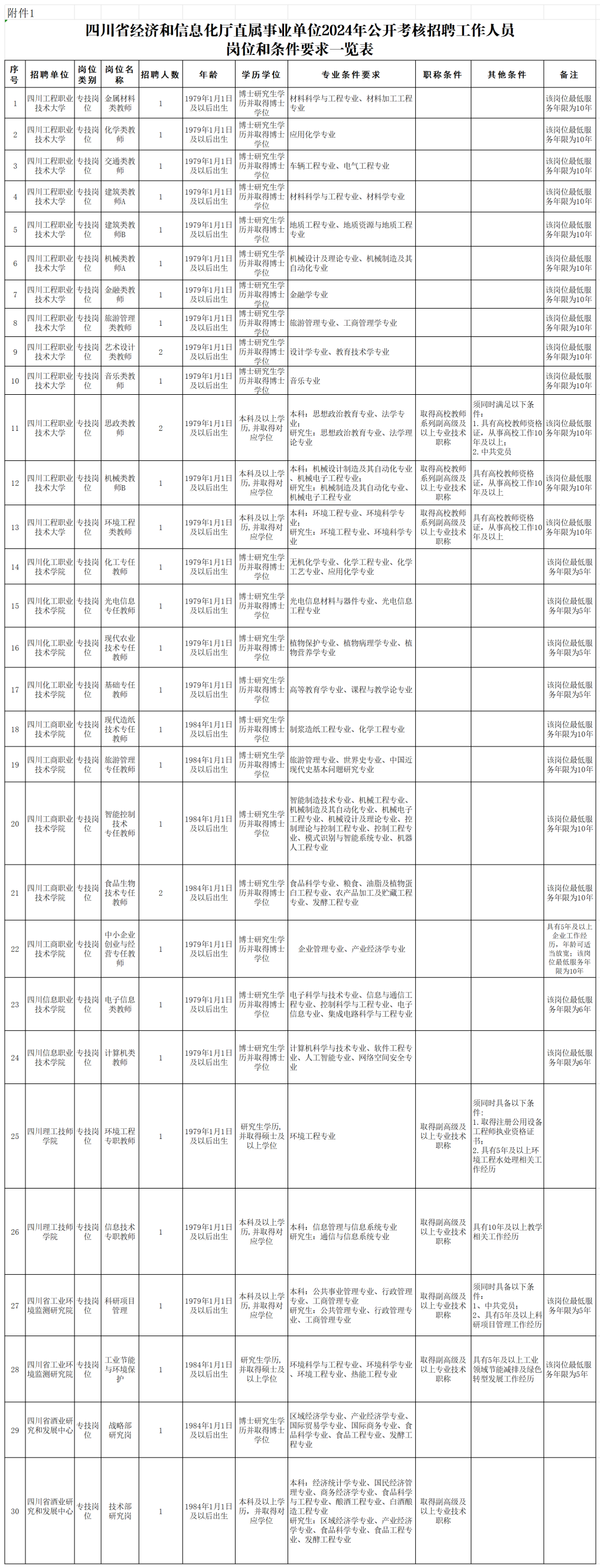 1.四川省经济和信息化厅直属事业单位2024年公开考核招聘工作人员报名表;