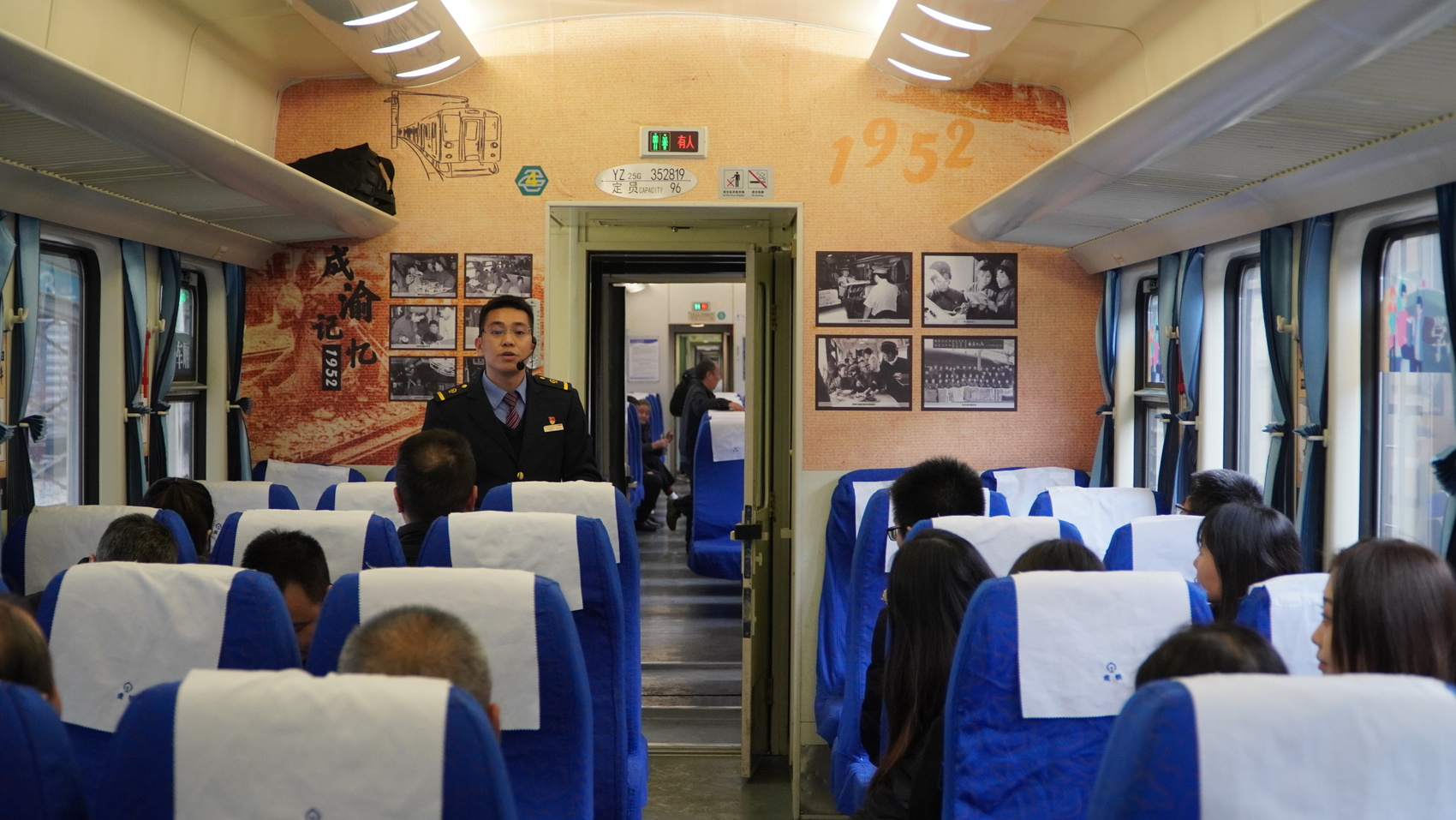 登上成渝铁路5611次慢火车,成都铁路局先进工作者刘运刚为大家带来了一场别开生面的微党课,深情讲述铁路建设背后的感人故事以及时代的沧桑变迁。