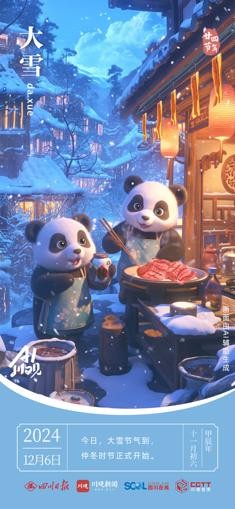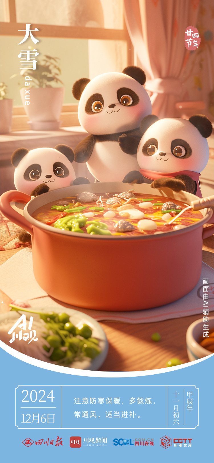 期待冰天雪地,又惧刺骨严寒,川宝暖意融融,予吾火锅热食!