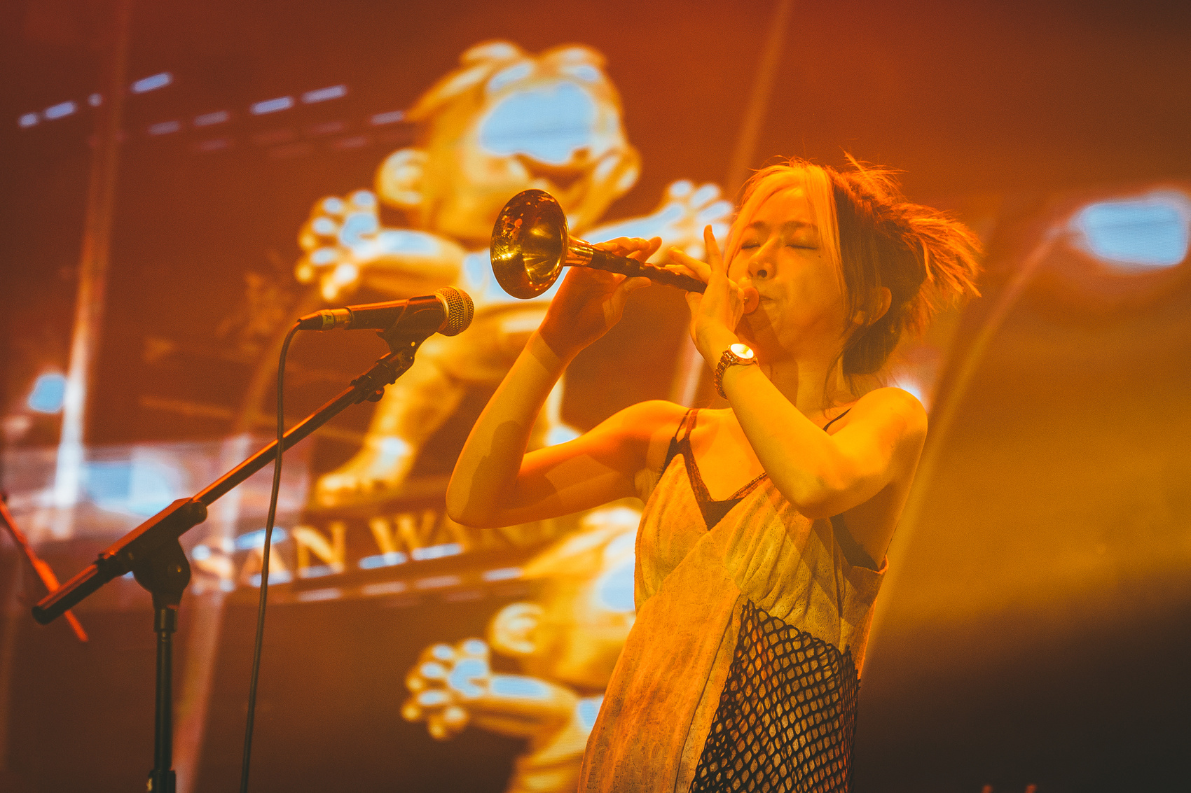 张婷钰并没有就此止步,继续探索唢呐演奏的更多可能性,慢慢地摸索出“另一些玩法”——与电子音乐、效果器相结合,对唢呐声进行二次处理。“效果器在摇滚音乐中经常会用到,但是将唢呐的声音用其加工,就会拥有非常多的声音。”张婷钰惊喜地发现,加工后的唢呐声音拥有比传统演奏更丰富的表现力,也更新潮、有趣。唢呐在他们乐队中,不再是“喜气洋洋”或“婉转哀怨”的代名词,新鲜的音乐表达给了唢呐和摇滚更丰富的可能性。除此之外,为触碰到更多的情感,张婷钰还经常使用“现代唢呐”,拥有更多半音的现代唢呐能为歌曲增加活泼、戏谑感。