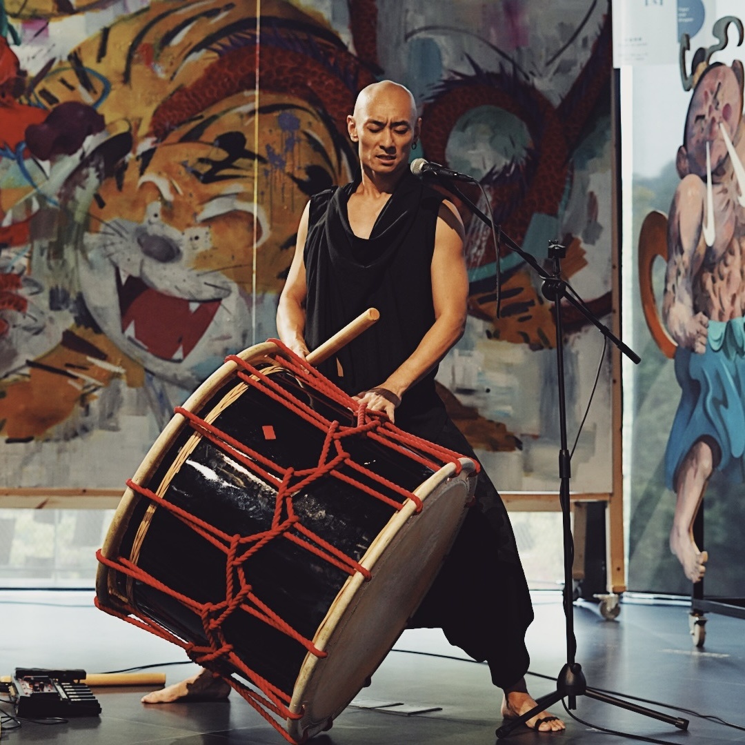 第一次见到凡响鼓队创始人叶松源时,你会很难将他与中国大鼓联系起来——一米九的身高、健硕的肌肉、粗犷的光头,与其说是音乐人,更像是一个专业运动员。他与中国大鼓的缘分,要从2009年说起。那年,27岁的叶松源受友人邀请,到中国香港观看国际龙舟邀请赛的开幕式,一群十五六岁的少年站成一排表演中国大鼓,他被深深地感动与震撼了。“当时整个人像是被鼓声‘镇住了’”这场表演瞬间点燃了叶松源对中国大鼓的兴趣。但彼时的他忙于工作,只能断断续续地学习敲击中国大鼓。
