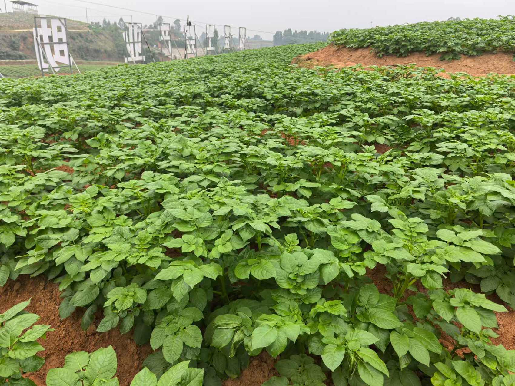 12月4日,自贡市贡井区五宝镇的马铃薯田地迎来了田间管理的关键时期。放眼望去,连片的马铃薯郁郁葱葱,绿油油的枝叶铺满田地,呈现出一派丰收在望的喜人景象。