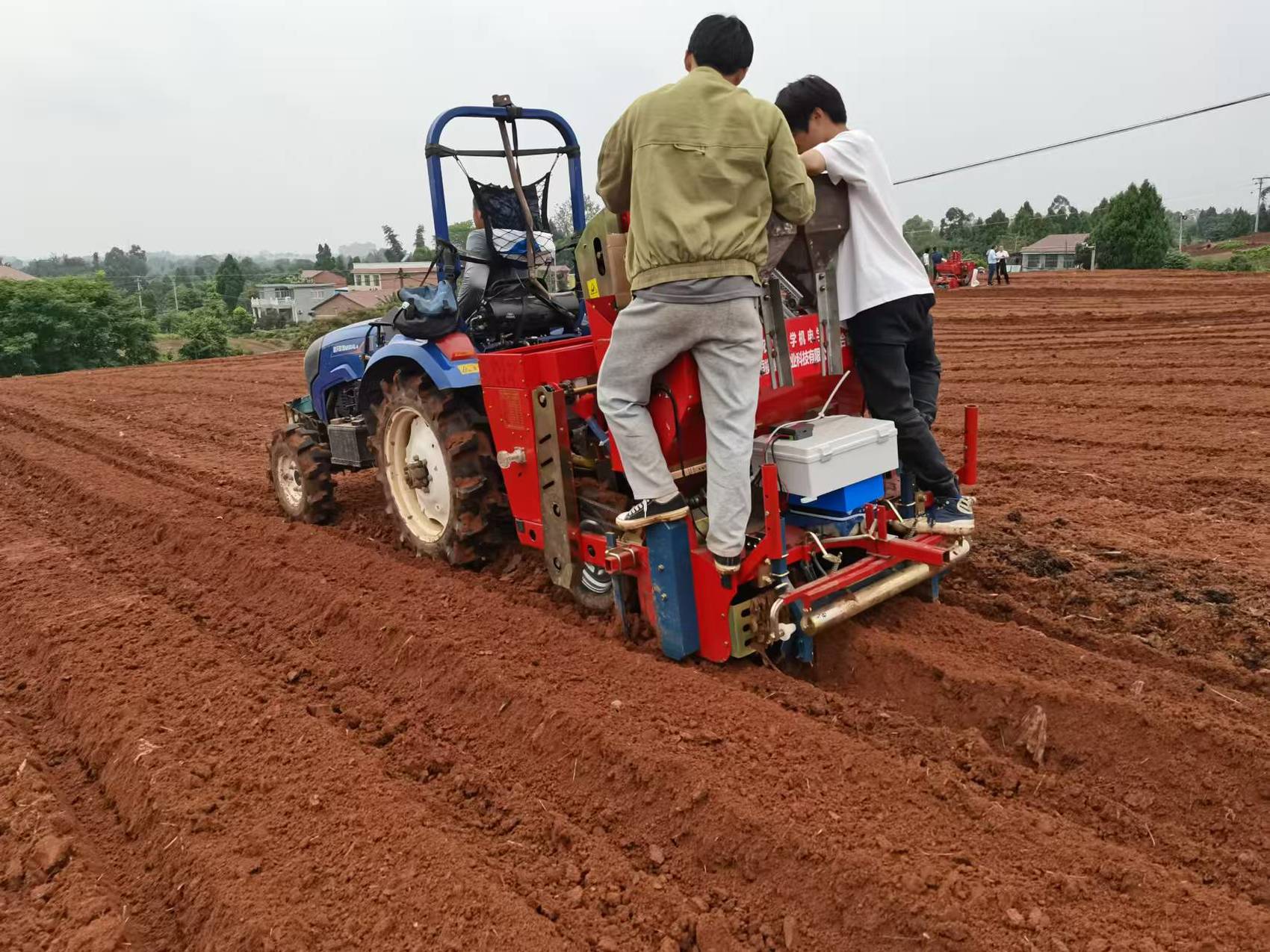 川农大研发的马铃薯播种机在五宝镇播种。