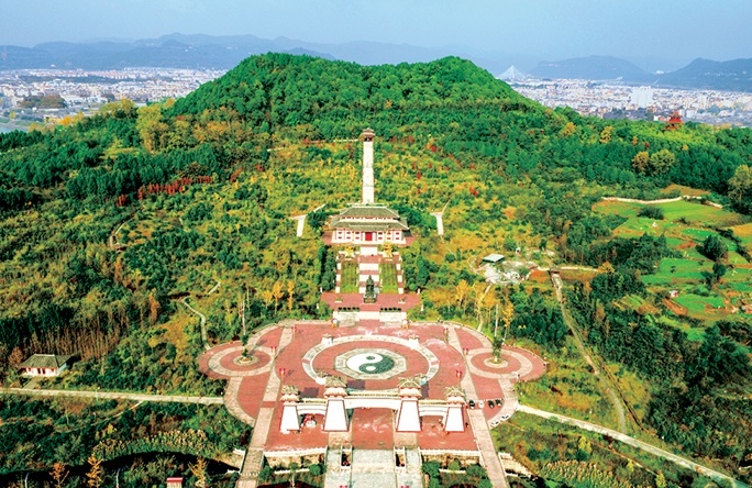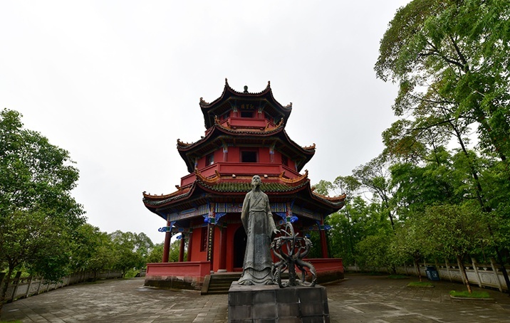 阆中锦屏山上的观星楼和落下闳塑像。张晓东 摄