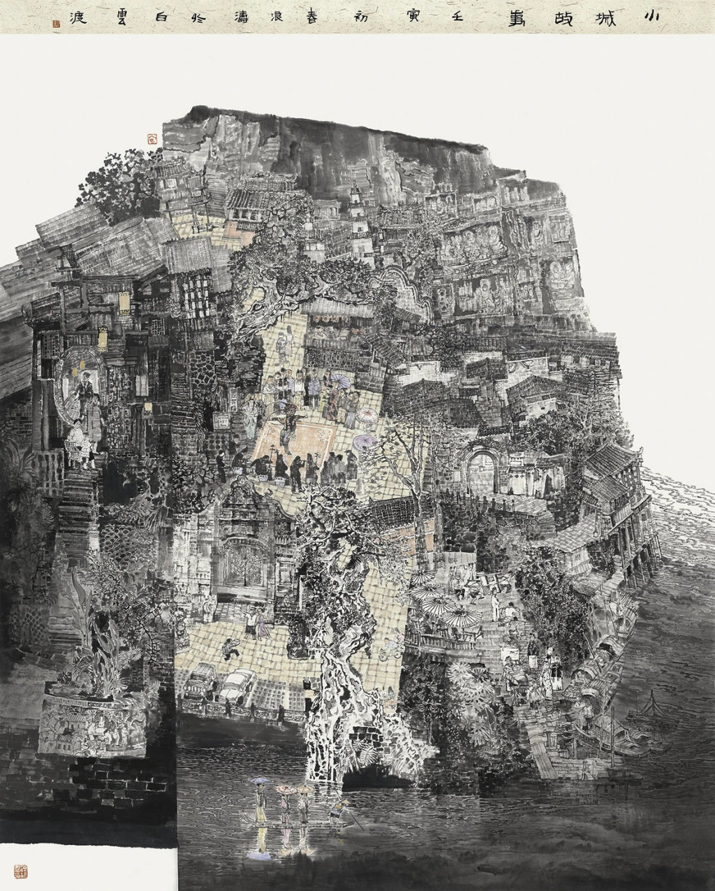 小城故事(中国画),尺寸:224cm×180cm,刘浪涛 作