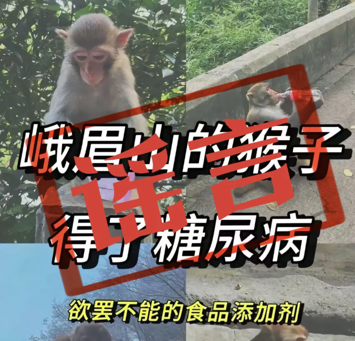 传闻可追溯到2023年“摄糖量超标而得病”记者注意到,峨眉山猴群患糖尿病的消息,可追溯至2023年9月,当时一个自媒体账号发布视频,称:峨眉山的猴子最近普查,有85%的猴子得糖尿病,“因为人们的造糖业做得太好了,把可乐给了猴子。”