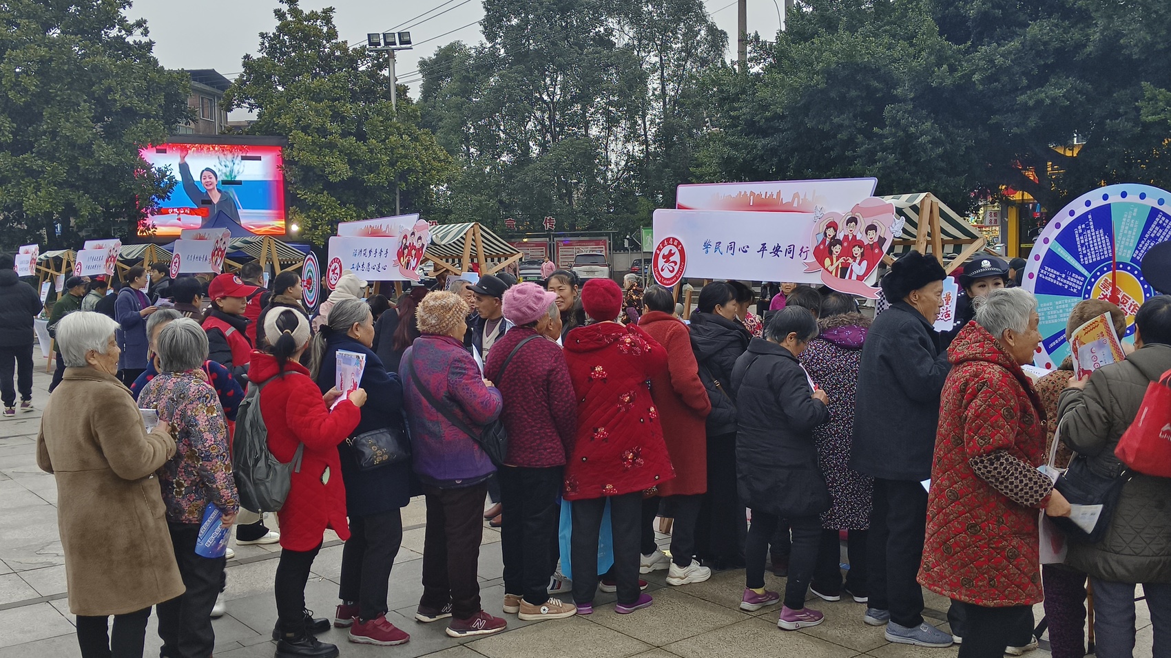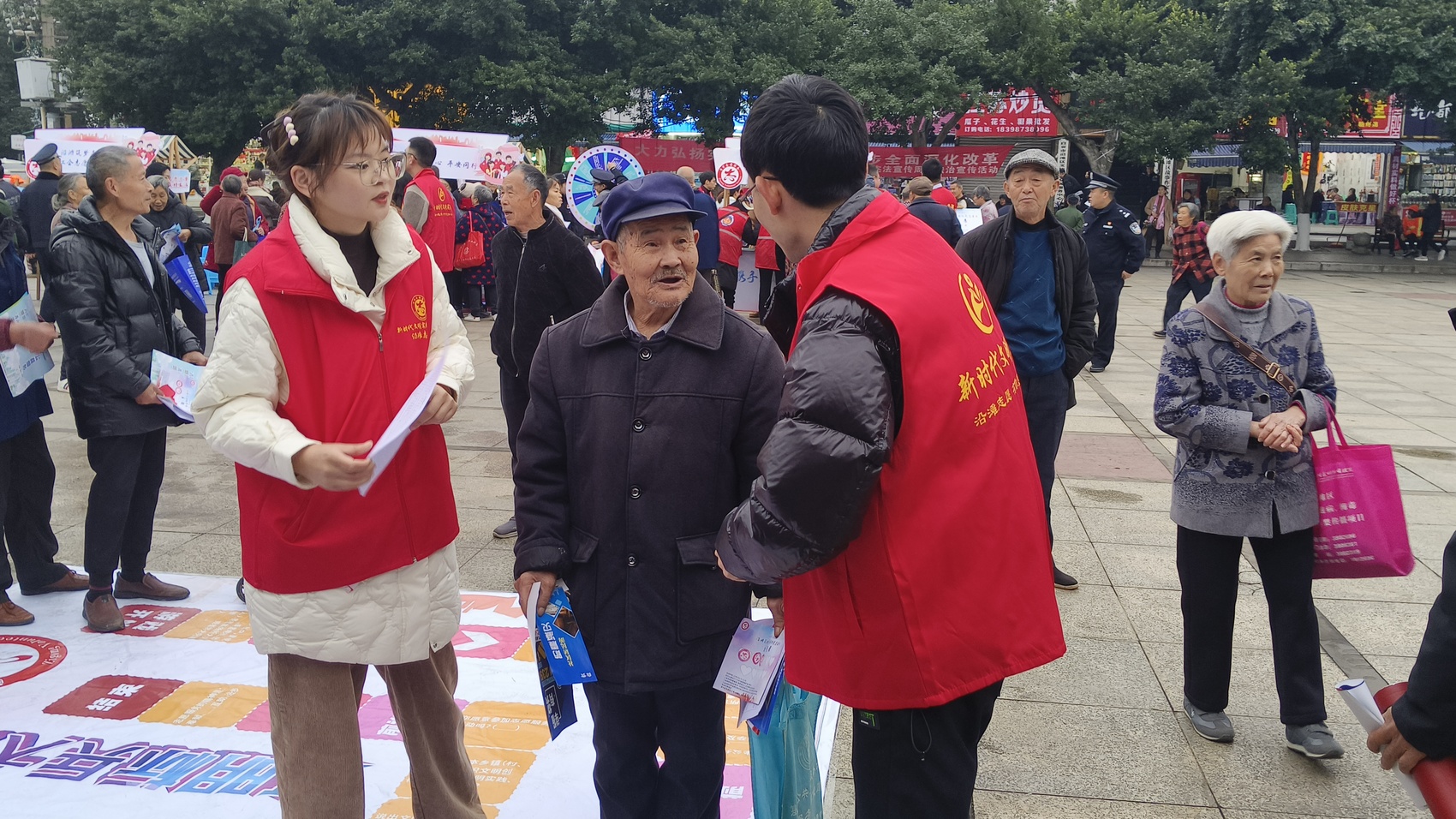“嬢嬢,千万别轻易在网上透露你的个人信息,特别是银行卡号和验证码。”在政策法规宣传区,沿滩派出所民警翟理和同事们不停地给群众宣讲反诈知识,并发放反诈宣传册。