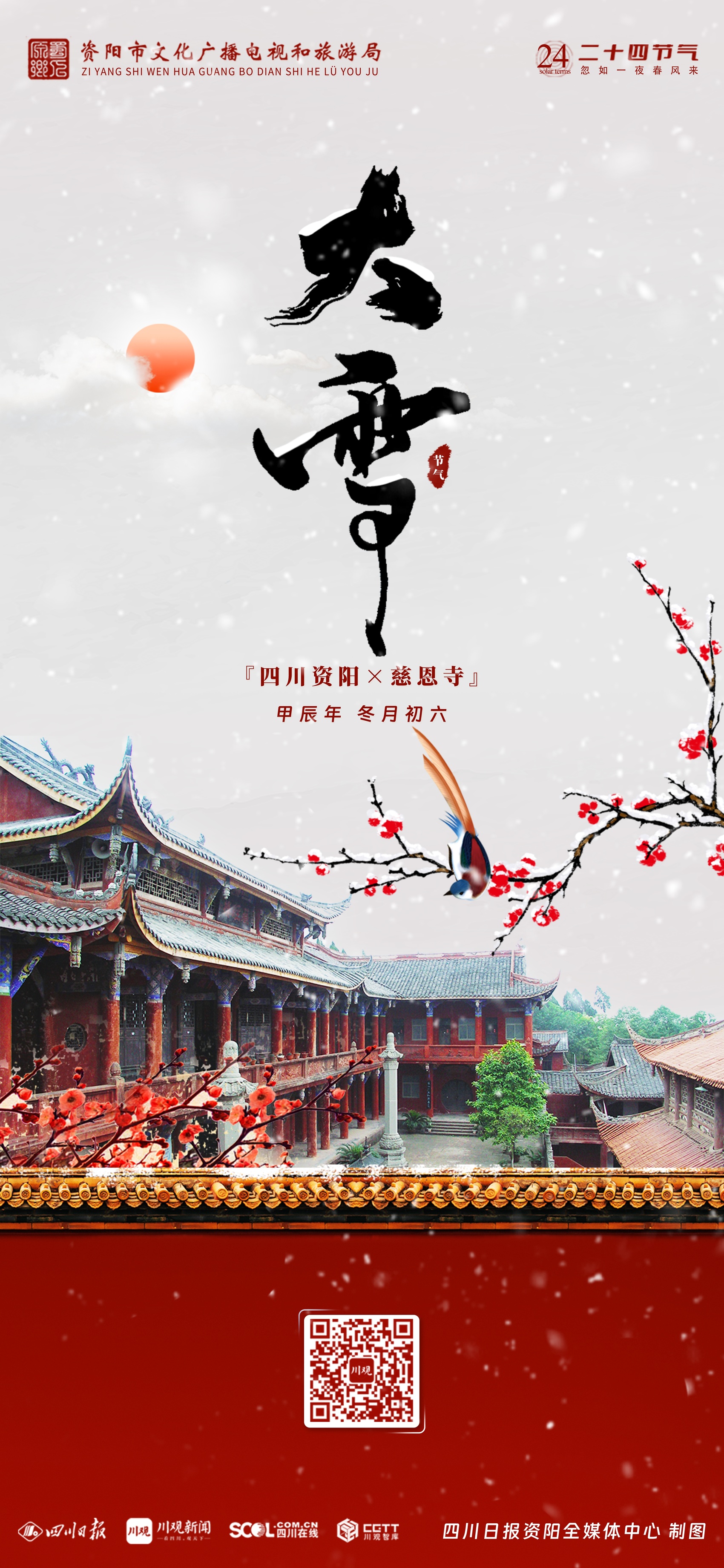 “大者,盛也。至此而雪盛矣。”大雪节气,带着它独有的节律和启示而来,不妨走进乐至县慈恩寺,漫步红墙青瓦,收获内心的宁静与成长。