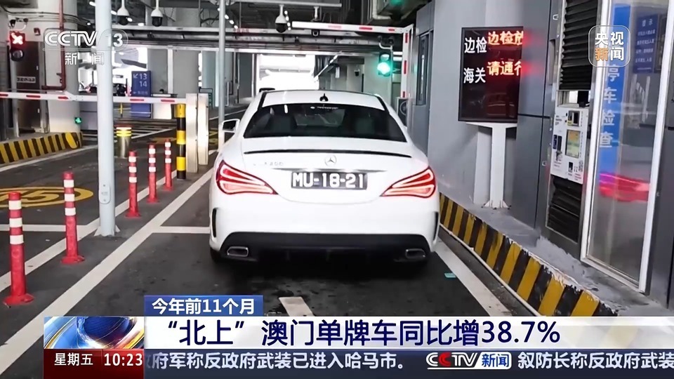 “澳车北上”的数量也在持续快速增长,今年前11个月,“北上”的澳门单牌车已超过138.7万辆次,超过2023年全年总量,同比增长38.7%。