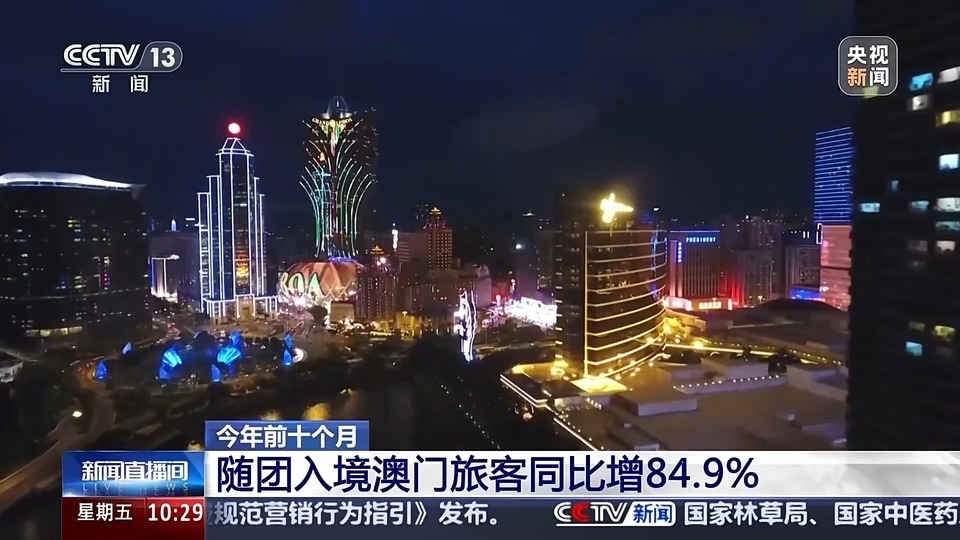 今年前十个月随团入境澳门旅客同比增84.9%