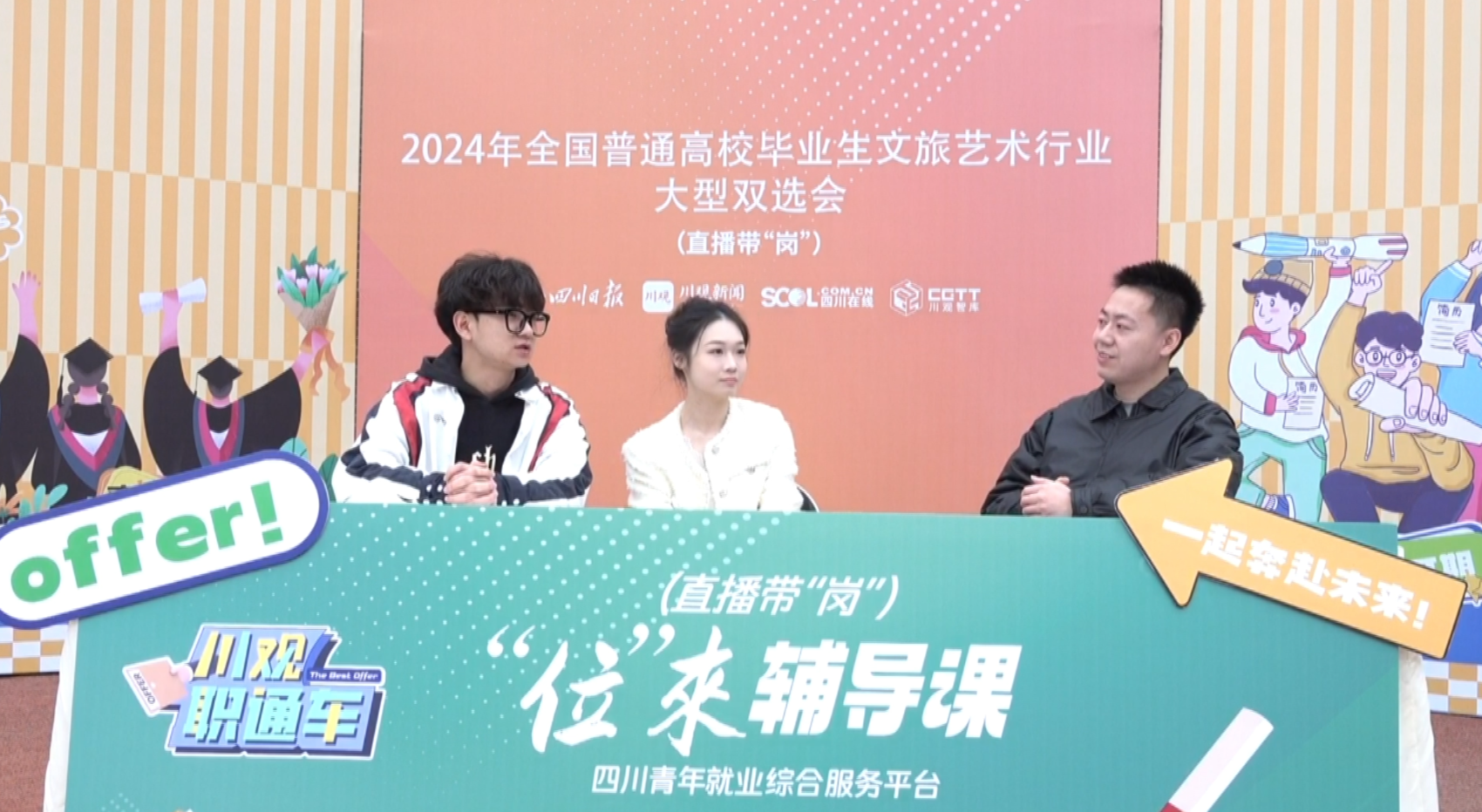 活动期间,由四川日报社联合众多高校共同推出的高校青年就业辅导课程“‘位’来辅导课”在现场同步直播带“岗”,对话单位招聘负责人、就业指导老师与高校学生代表,为大家带来招聘岗位信息、就业咨询与辅导。