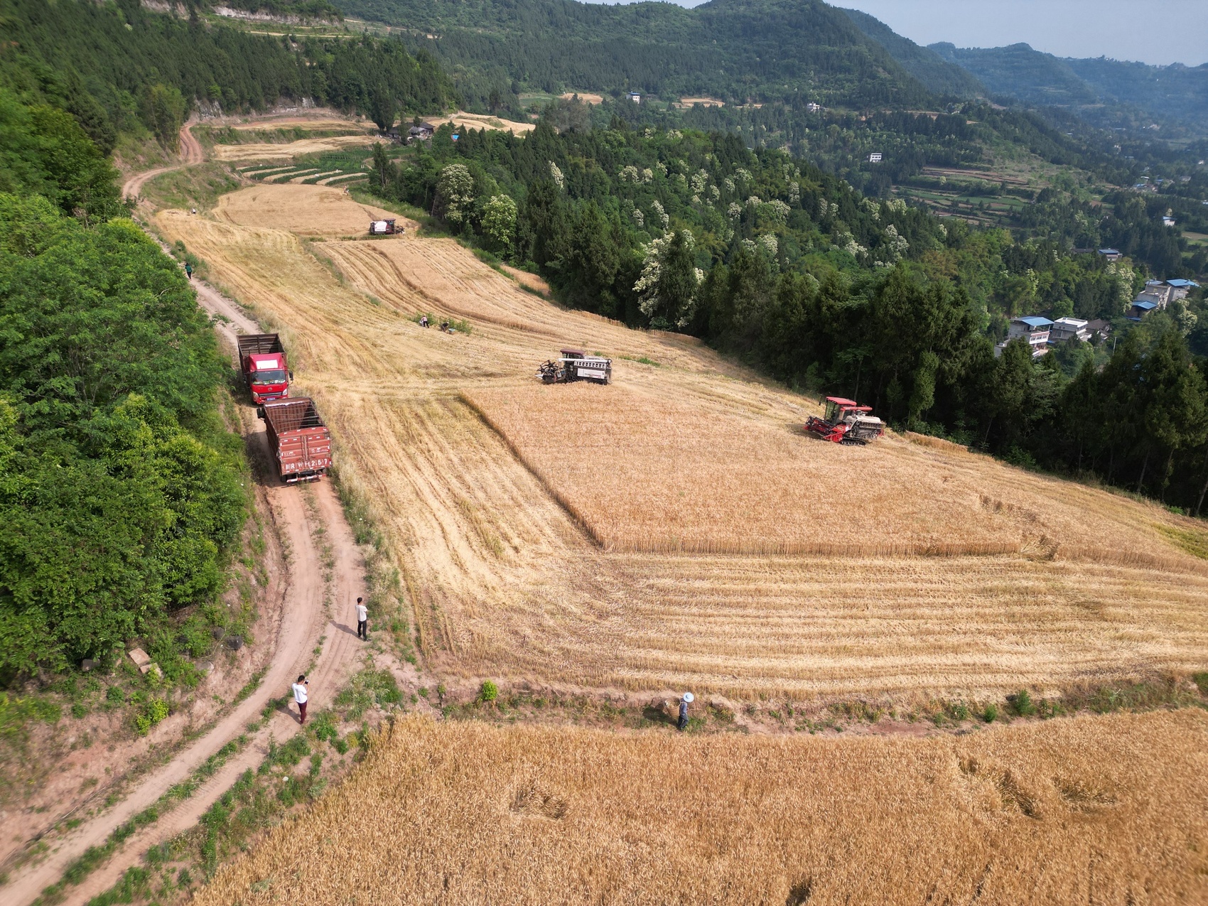 仪陇县小麦机收现场。